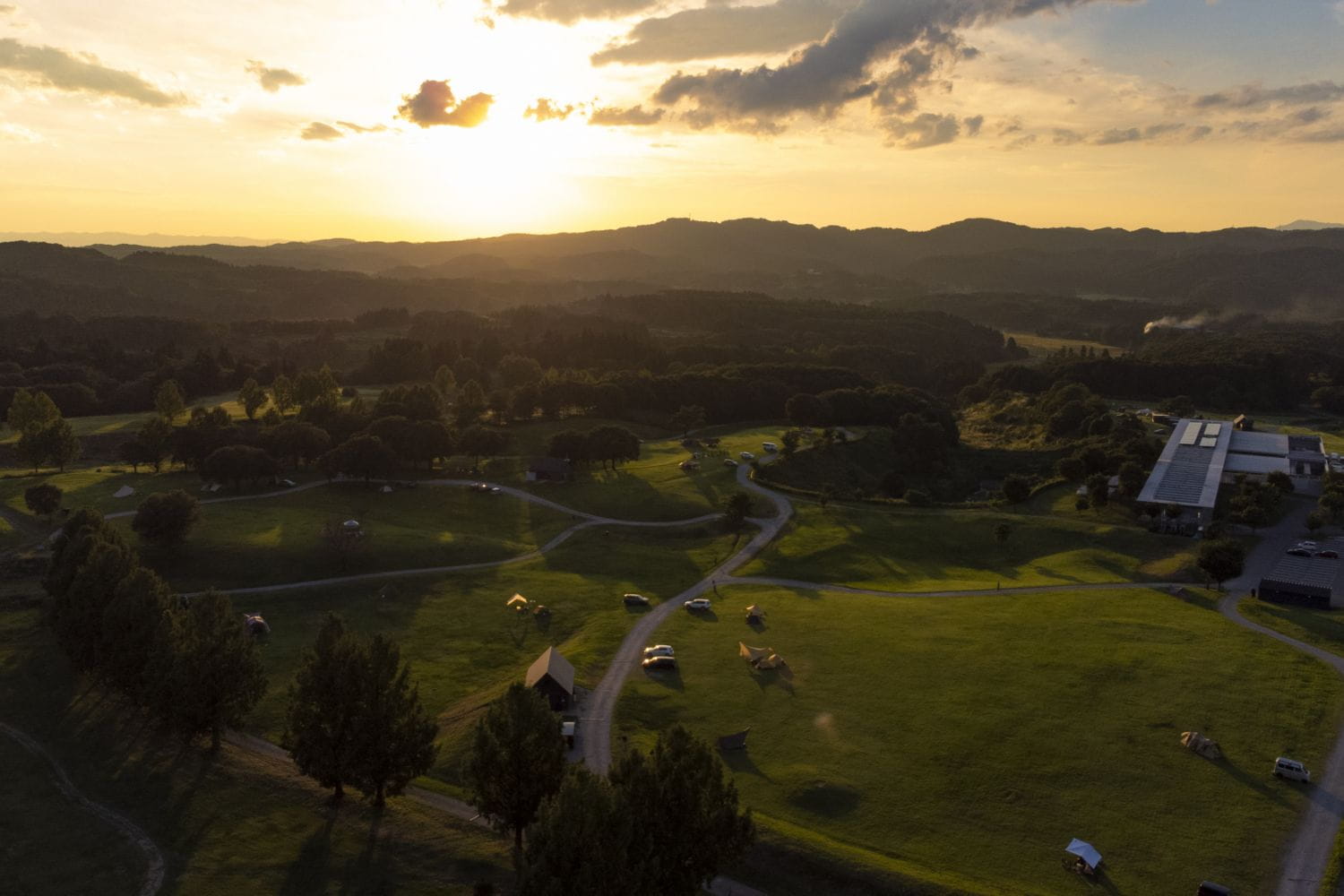 天気のいい日には美しい夕陽が見られます。夜には街灯のないフィールドで星空観賞も楽しめますよ。満天の星空の下で行う焚火も格別です。