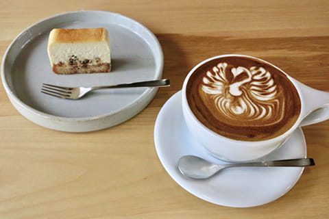 フィールドから車で5分。牧草地帯の景色が美しい、コーヒーショップ「yamaga coffee」。新鮮なコーヒー豆も取り扱っており、テイクアウトも可能です。