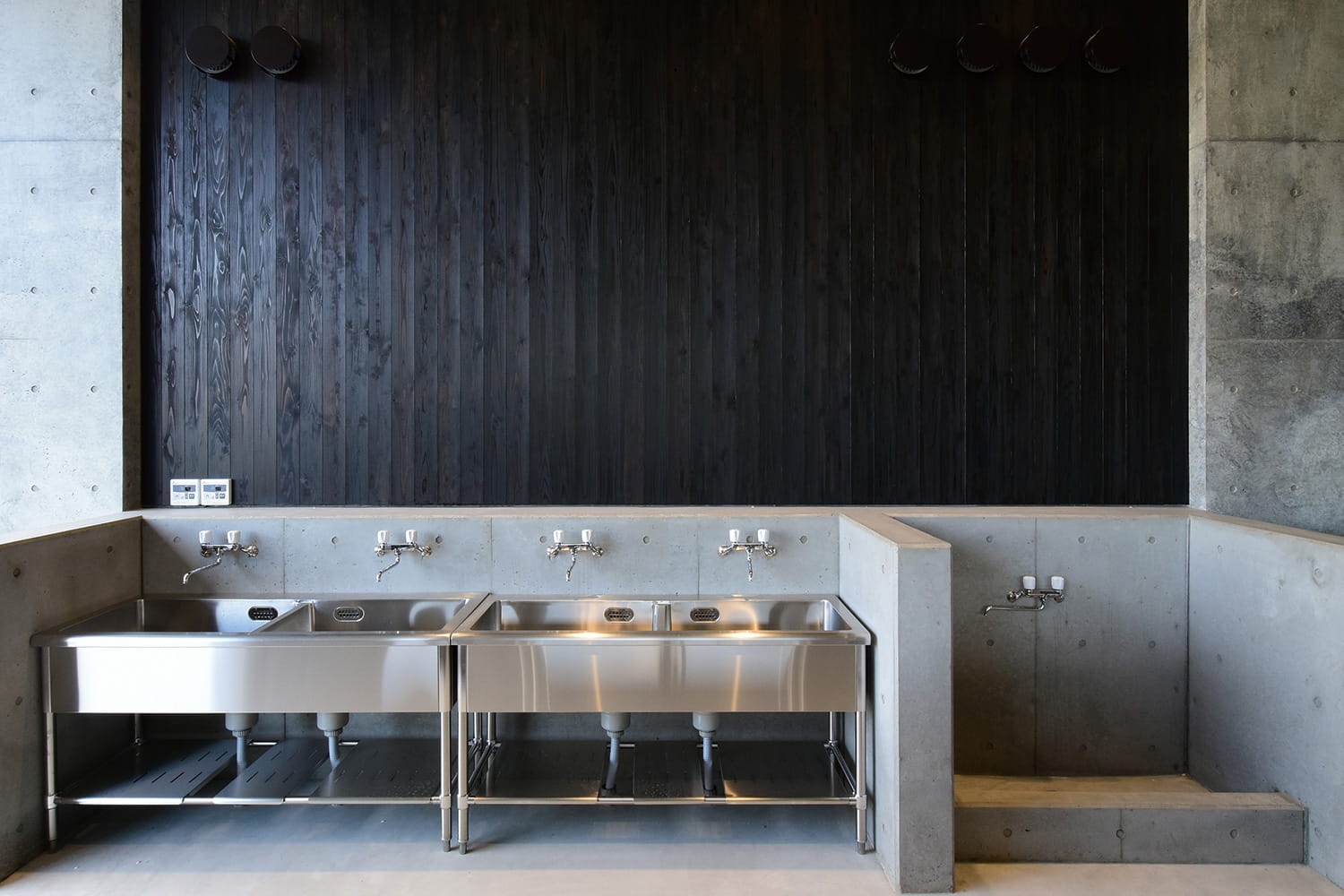 施設利用者がご利用いただける炊事兼洗い場。水、温水とも、ご自由にご利用いただけます。
