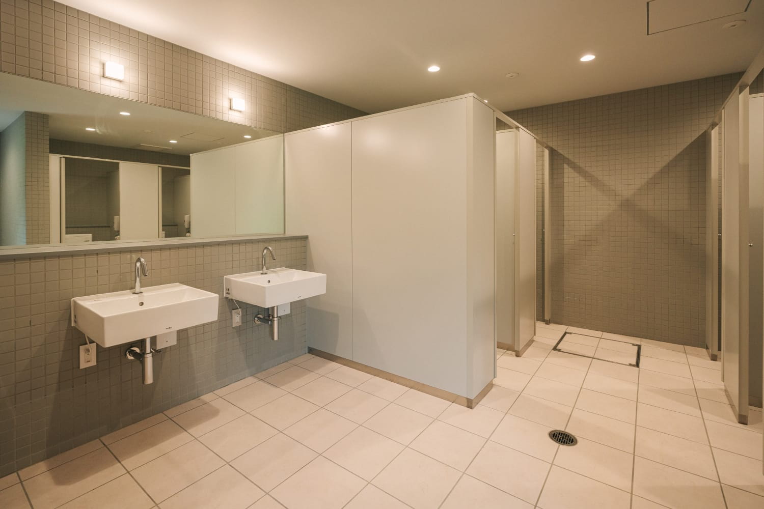 施設内の全てのトイレは暖房便座と温水洗浄を完備。バリアフリートイレの設置もございます。
