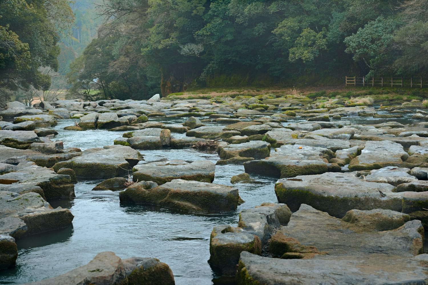 “甌穴(おうけつ)”とは河底や河岸の岩石面上にできる円形の穴のこと。ゴツゴツとした岩が集まったようにも思えますが、実はすべて繋がった1枚の岩盤。最大幅は80m、長さは600m、甌穴群としての規模は世界一といわれています。
