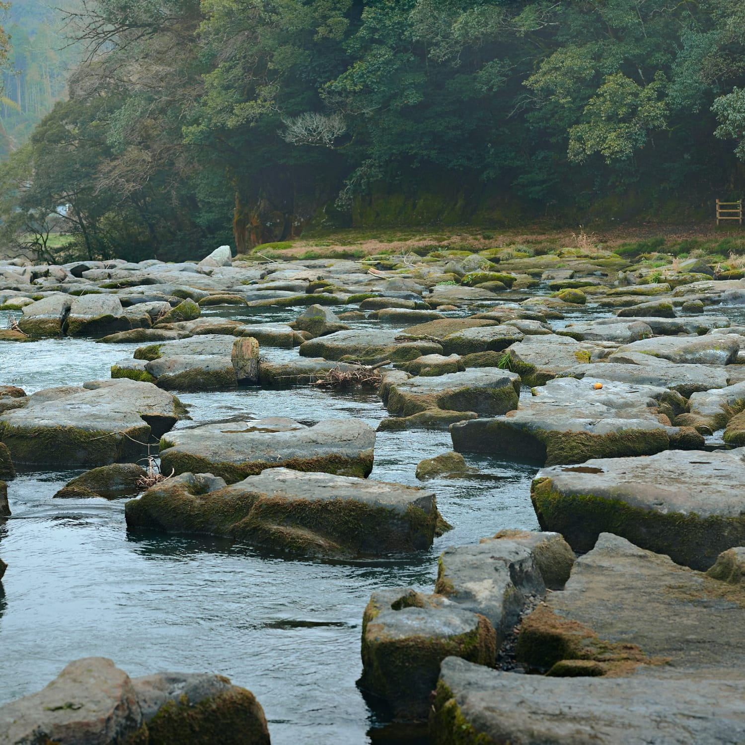 約34万年前の加久藤火砕流でできた地層(溶結凝灰岩層)に、霧島山地から流れ出た清流が流れ込み、小さな石や岩石の破片が回転することで、この地層に穴が開いて形成されたもの。最大幅80メートル、長さ600メートルの規模は、世界一とも言われているそう。形成は現在も進行中で、地質学上も貴重なこの甌穴群は、国の天然記念物に指定されています。