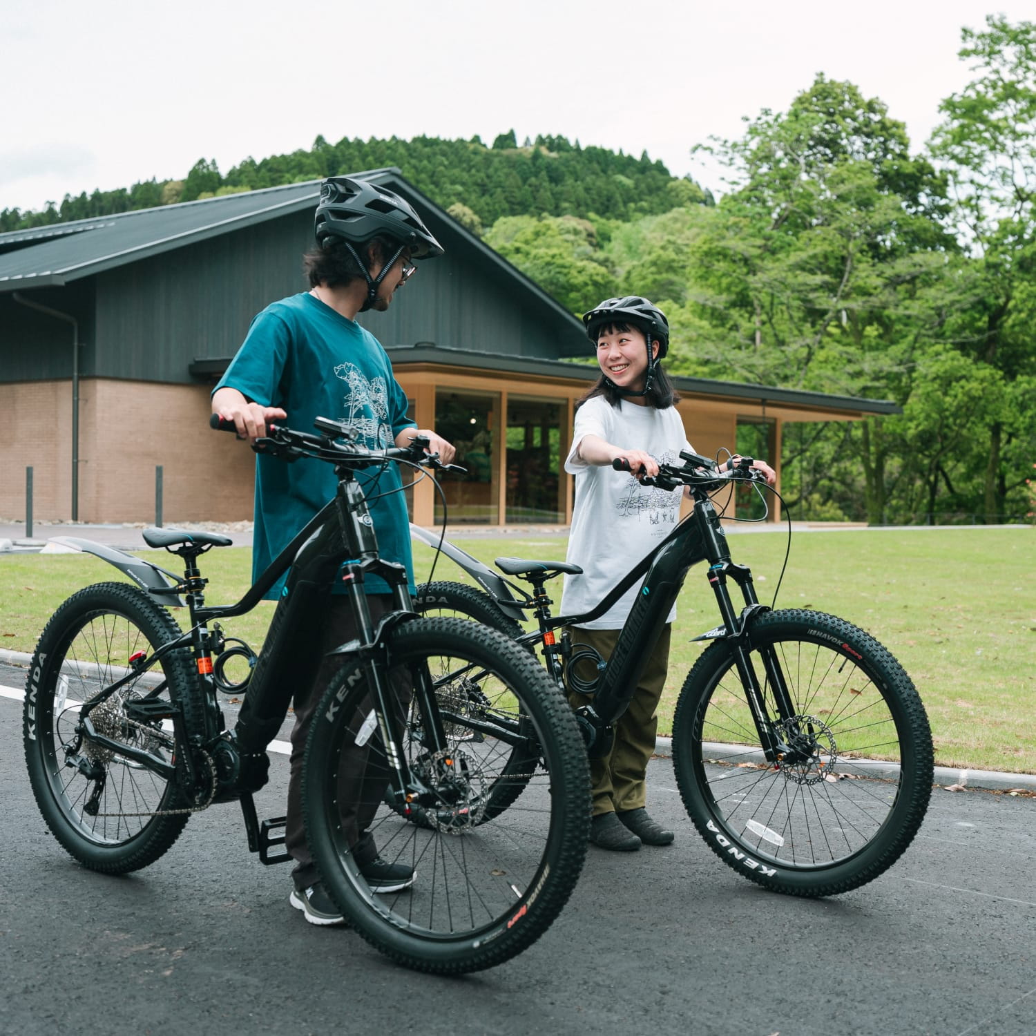 電動マウンテンバイクのレンタサイクル(有料)霧島ジオパーク内に位置する関之尾公園周辺には、溝ノ口洞穴や母智丘公園など雄大な自然を感じられるスポットが沢山。電動付なので気軽に、自由気ままに散策していただけます。遊びのプロがガイドするツアーも企画中。