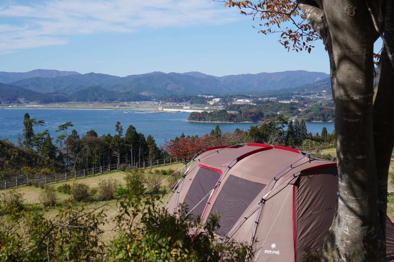 岩手県と宮城県の県境にある広田湾を見下ろす高台に建ち、開設以来、東北地域のキャンパーに親しまれてきたキャンプフィールド。2011年の東日本大震災の発生以降、市街地の復興が進むまでの10年間は被災した住民たちの仮設住宅用地として機能してきました。そして2023年秋、スノーピーク直営キャンプフィールドとして再びオープンすることとなりました。