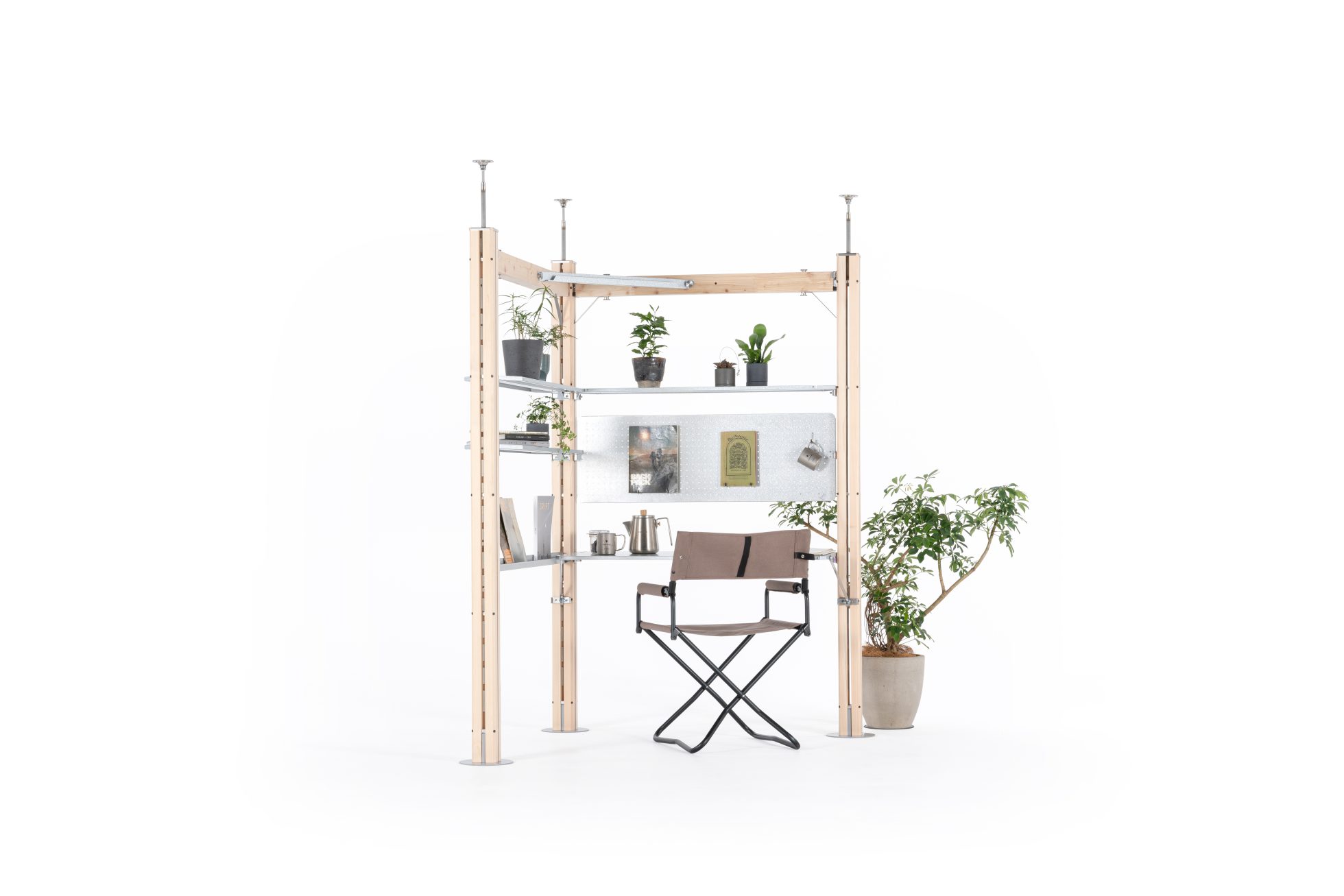 組み立て式のパーソナルスペースを作るこの家具システムは、キャンプ用品メーカーらしい発想でパーツの組み合わせによる拡張性の良さを活かしている。