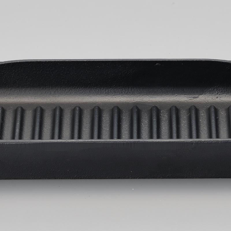 フタの裏面には肉や魚を焼くのに便利な3mm厚のリブ加工を施しています。肉や魚の余分な油を落とし、きれいな焼き目が付く機能です。