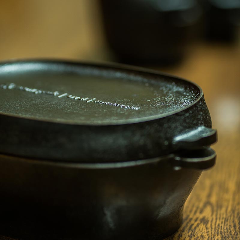 コロダッチは精巧な砂型を使用するので、極めの細かいところまでシャープなデザインを実現。表面はもちろん、ロゴやフタの立ち上がるエッジ部分も鋳物とは思えない仕上がりです。