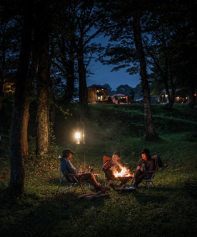 S・M・Lの3サイズの焚火台を、スタイル、人数、シーンで使い分ける。