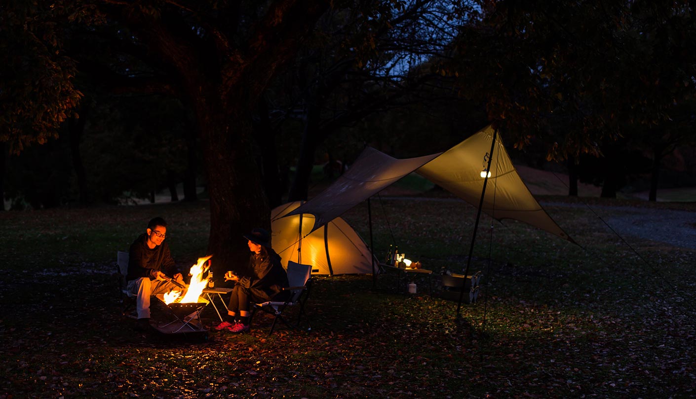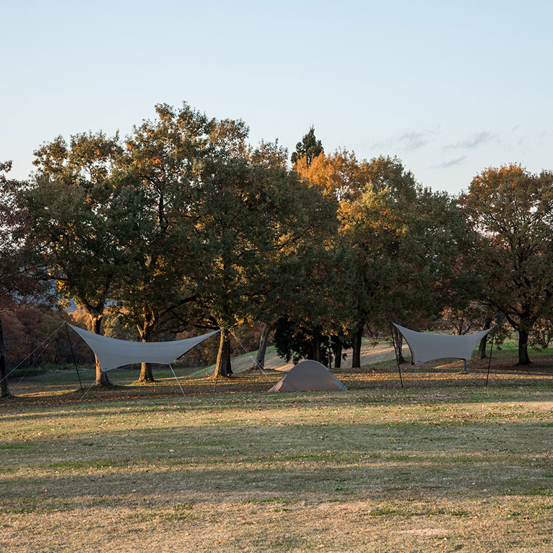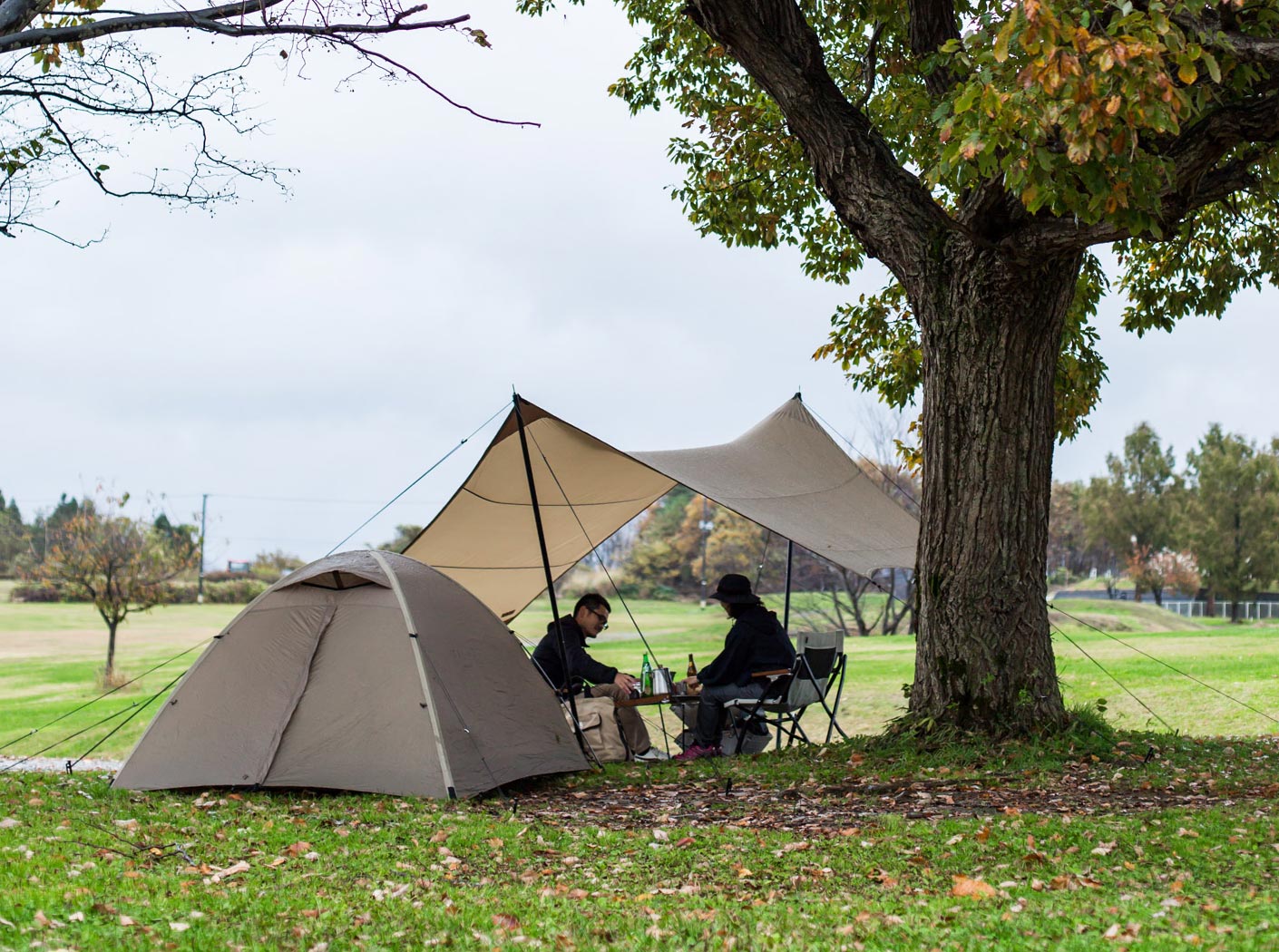 1988年、スノーピークは初のタープをリリースした。降雨量が多い日本の気候で野遊びを楽しむため、フィールドの状況や目まぐるしく変わる天候に応じて張り方をいくらでもアレンジすることができるのがタープ。ドームテントと組み合わせてリビングを独立させる日本独特のスタイルを生み出し、多くのファミリーキャンパーに支持されたスノーピークのタープだが、私たちがデュオキャンパーに向けに製品開発に取り組んだのは、今から約20年前まで遡る。当時、ファミリーキャンプが一世を風靡し1580万人のキャンパーがいたとされる時代。私たちは、ファミリーの枠からさらに範囲を広げるため、ファミリー用に製品化されていた「リーフウイング」というタープをデュオ向けのサイズにリサイズしリリース。ファミリーキャンパーが増え続ける中、ソロやデュオキャンパーにニーズがあるという仮説を立てたのだ。しかし、当時は私たちが思うような結果は得られなかった。あれから20年。現在、多くのソロやデュオキャンパーがフィールドで野遊びを楽しんでいる光景を目にして、ようやく私たちが届けたい人の元へ届けることができる。ファミリーキャンプを卒業した世代、またはキャンパー同士のコミュニティのつながりにより、ソロキャンパーが増えてきたことが大きい要因だ。コンパクトカーに乗り換えて、身軽にキャンプを楽しむ大人のキャンパーが増えてきたのだ。