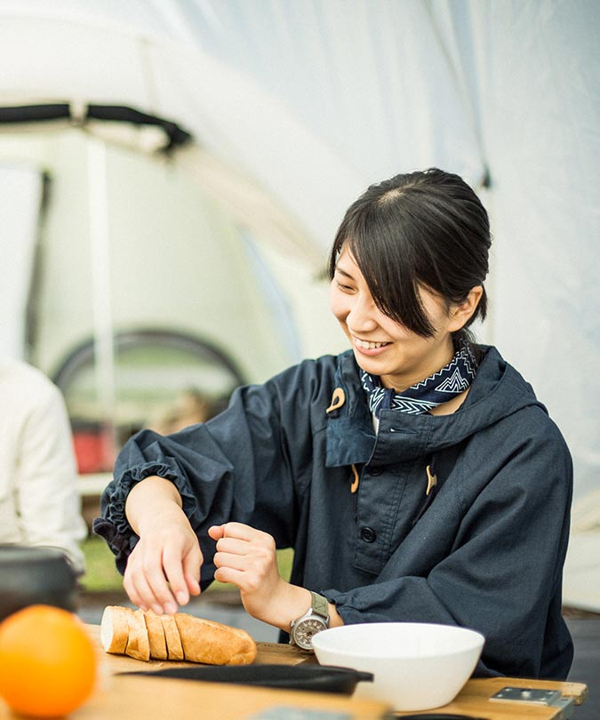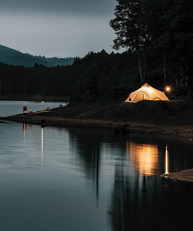 ワンポールシェルターの曲線の美しさに加え、フレームを配置することでより複雑なラインを生み出し印象的なシルエットになりました。自然界にある植物などのように全ての形に機能を兼ね備えた「機能美」を追求。さらに、より美しいラインを生み出すために微調整を行い、自然の中に溶け込むラインが誕生しました。