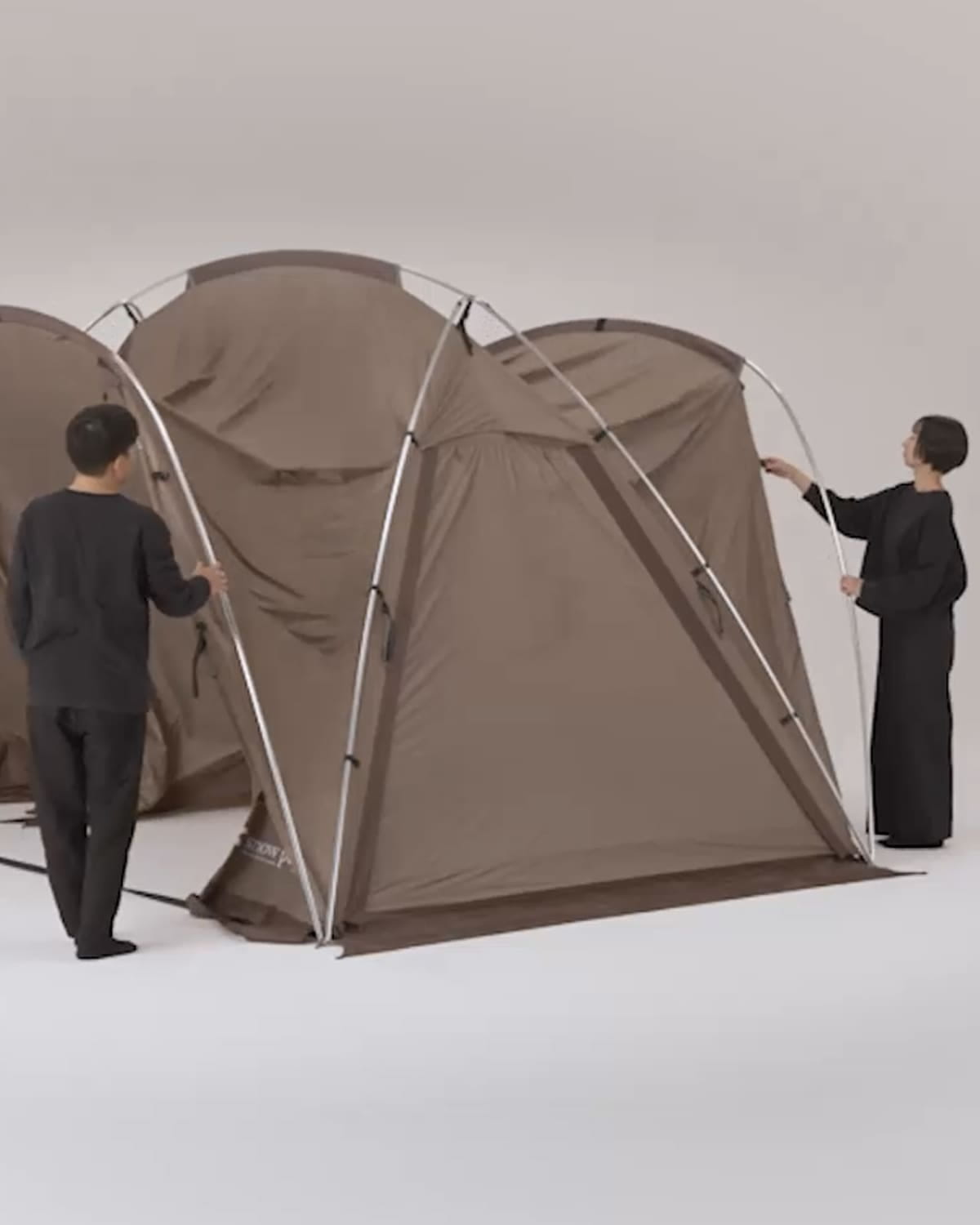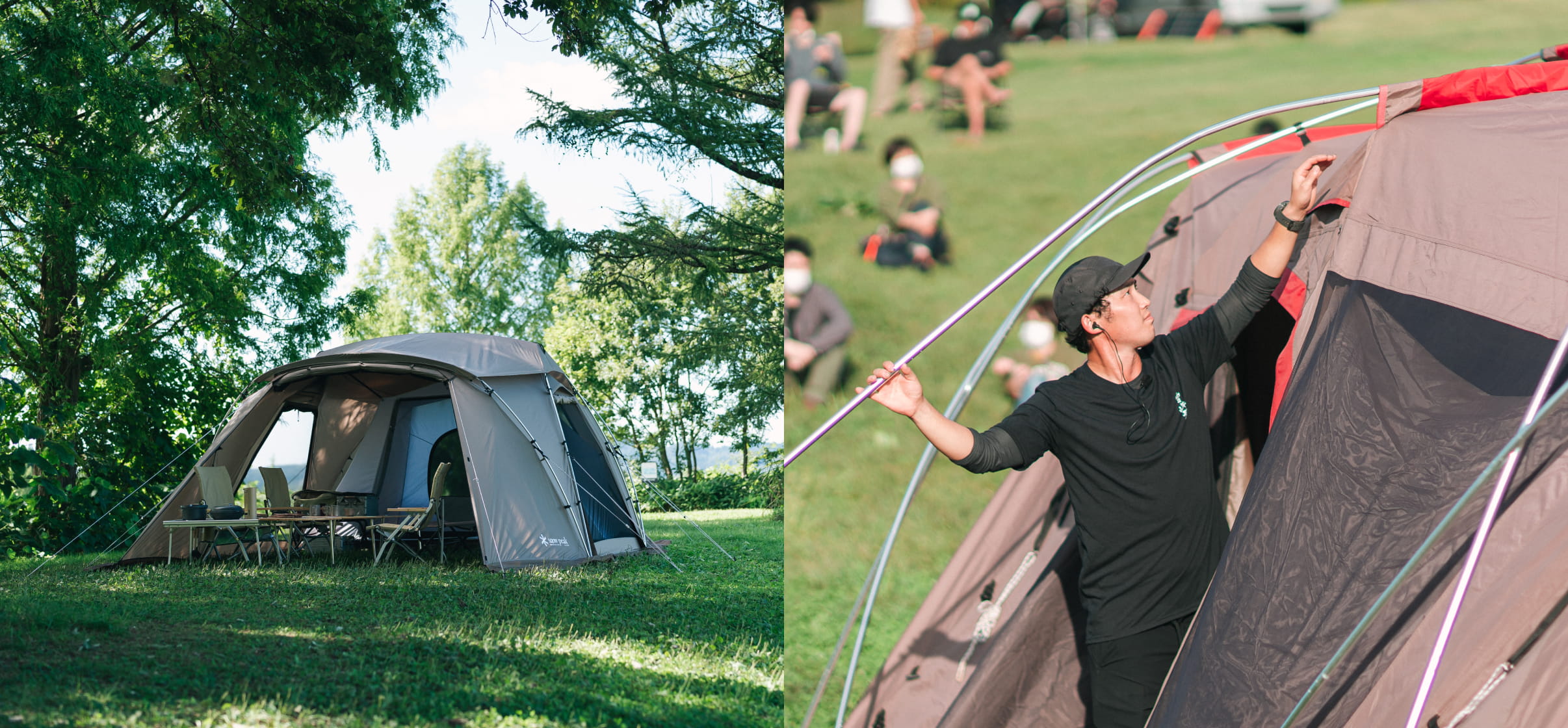 簡単に設営できる、ベッドルームとリビングが一体の居住空間