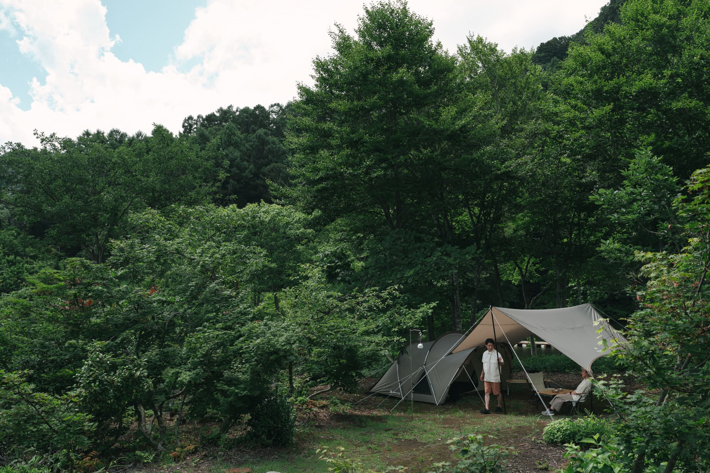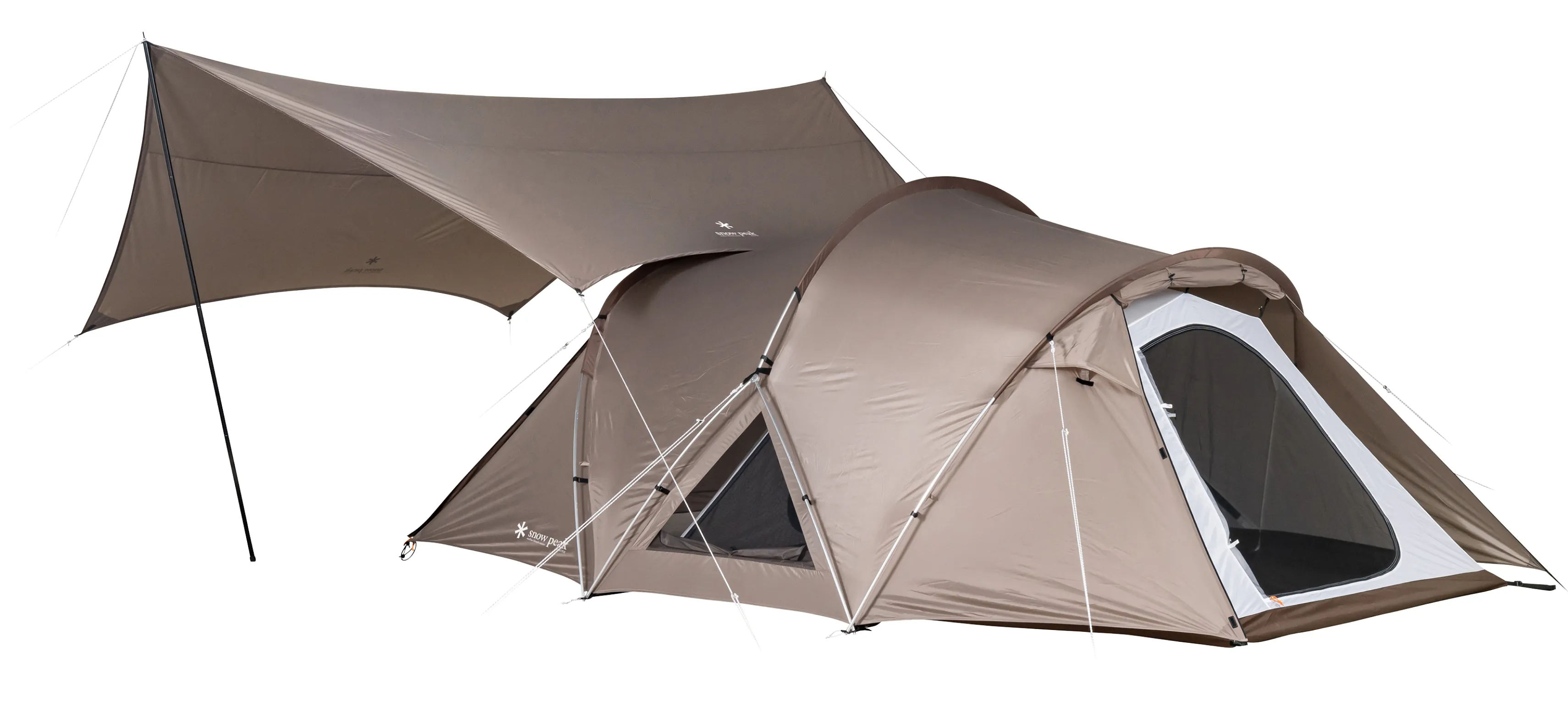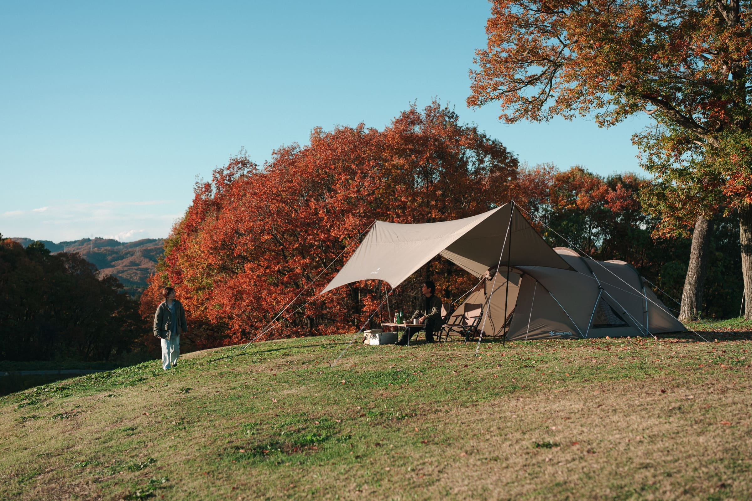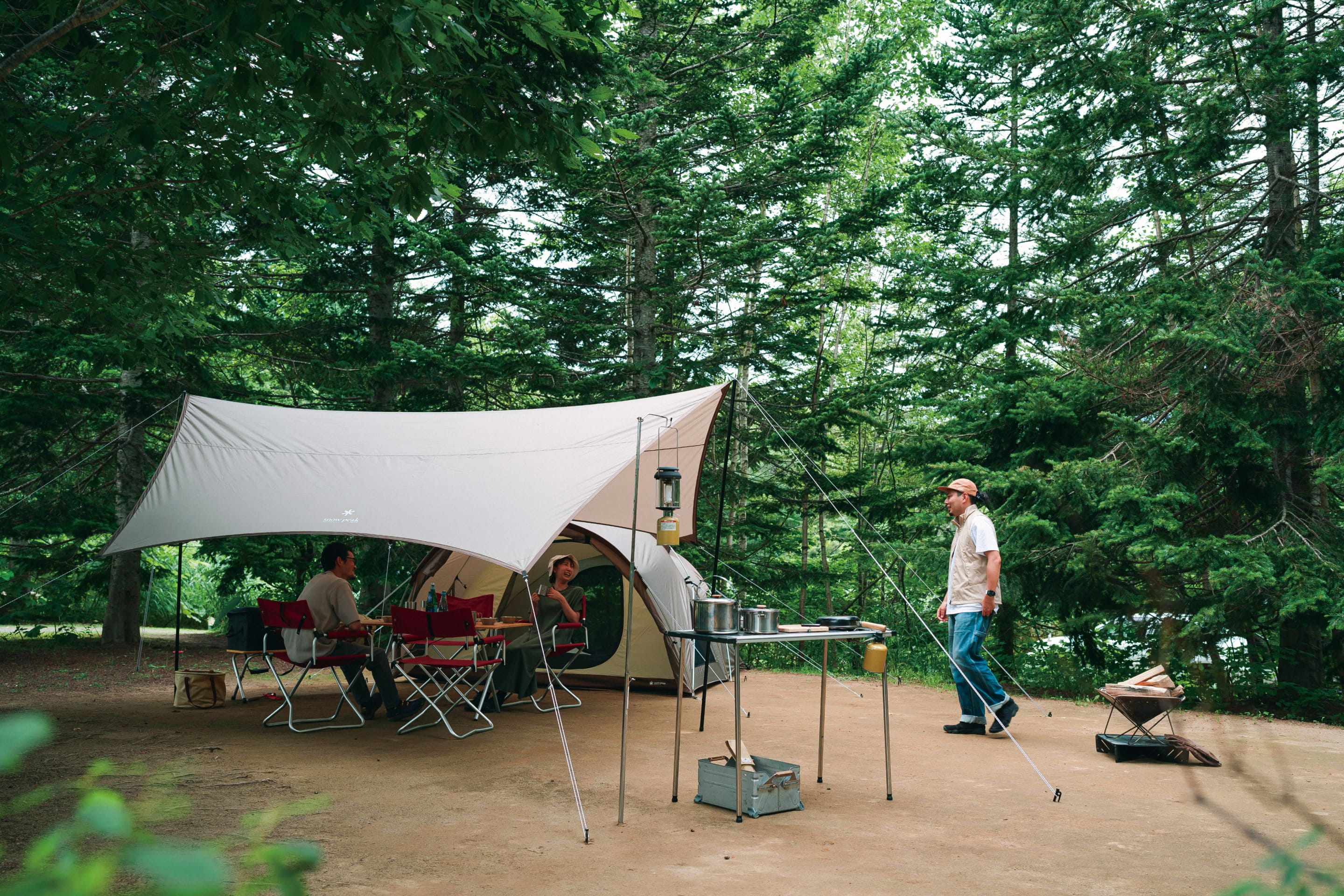 キャンプ未経験の方でもストレスなく使えるよう、細部まで工夫を施したテントとタープをセットにしました。立てやすさと強度を両立したテントは、フライシートとインナーテントの両方にメッシュパネルがあり、風通しが抜群。日差しを遮って影をつくるタープは、快適なリビング空間として活用できます。多目的に使える汎用性の高さも魅力のモデルです。
