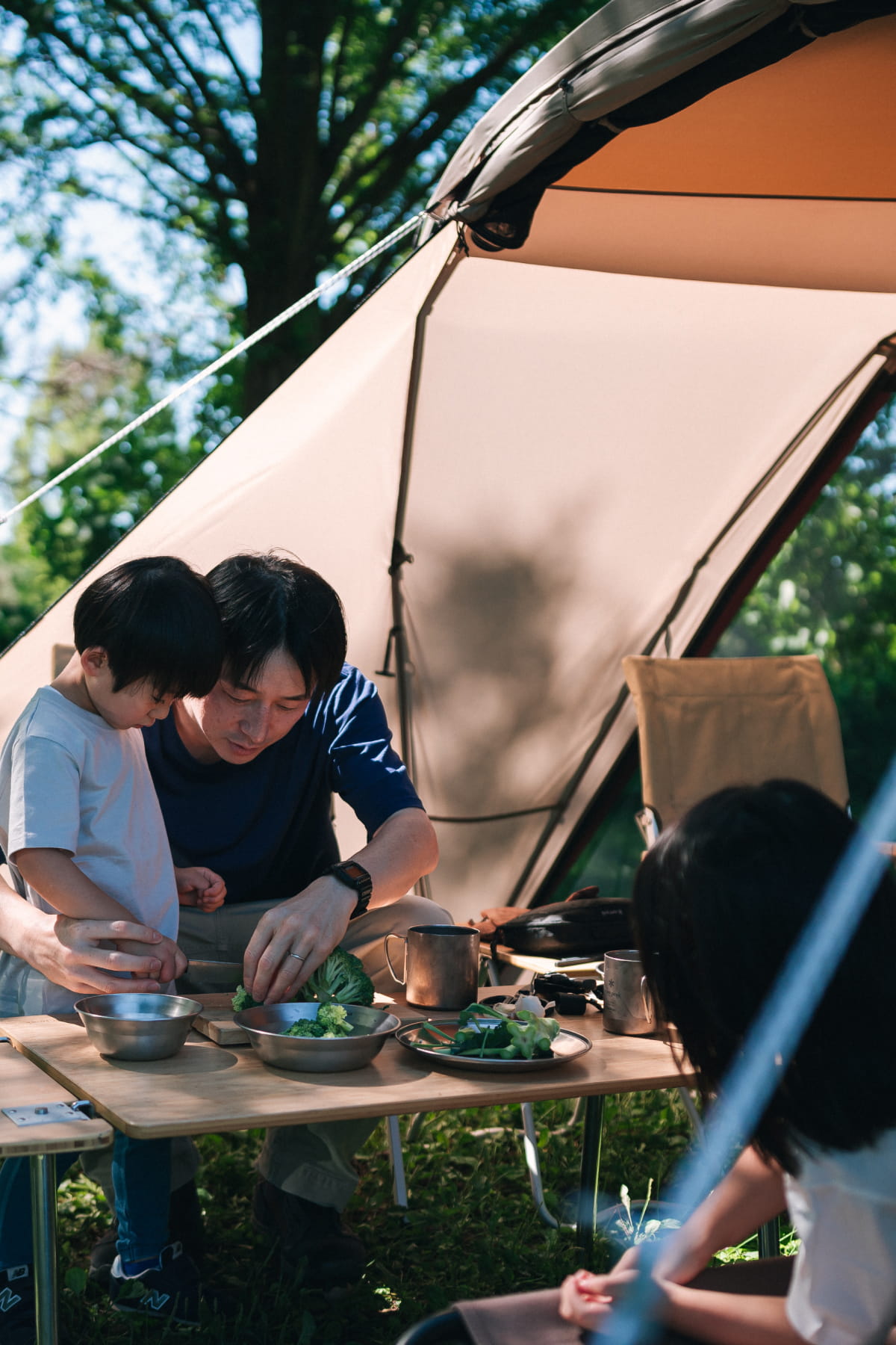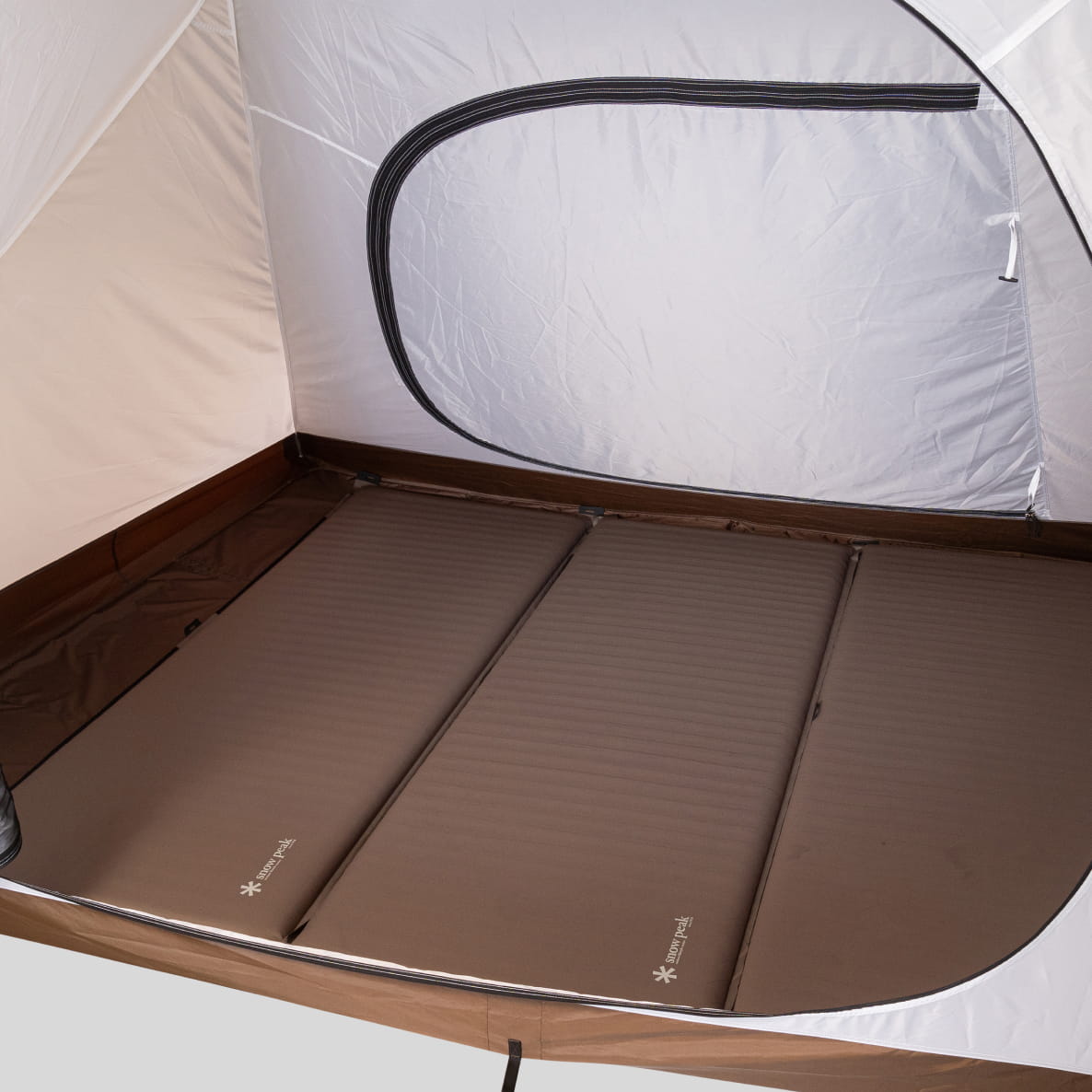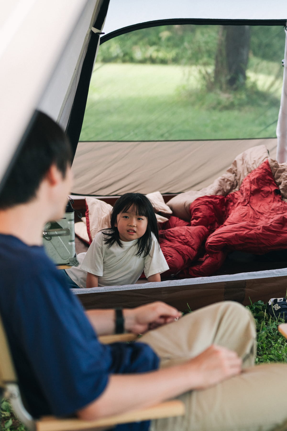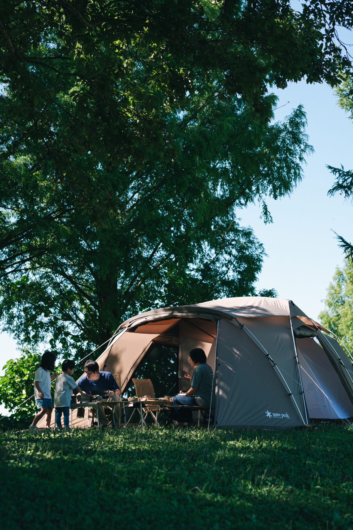 リビングと寝室が一体化した2ルームシェルターは、一度の設営で完了。家族4人で快適に過ごせます。付属の吊り下げ式インナールームを外せば大型シェルターとしても活用できます。