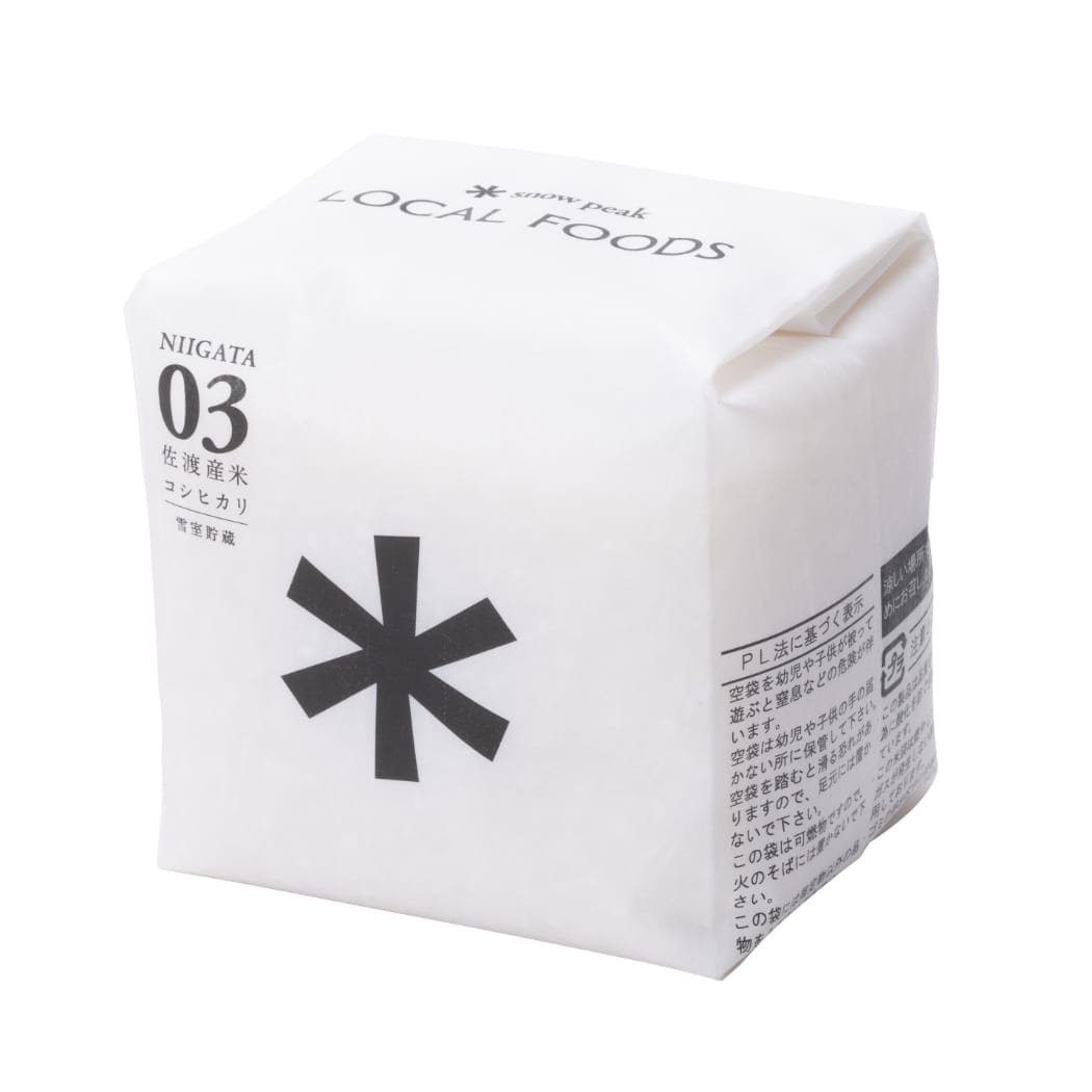 スノーピークが本社を構える新潟県三条市下田地区は、粟ヶ岳や守門岳の豊富な雪解け水や厳しい自然環境など、美味しい米を育てるのに最適な条件が揃った地域。「新潟 下田産コシヒカリ 雪室貯蔵」は、そんな下田地区で育まれたお米です。古くから雪国に伝わる天然の冷蔵庫「雪室」で熟成させることで、さらに旨みがアップ。お米の甘さや香りを、そのままパックに閉じ込めました。