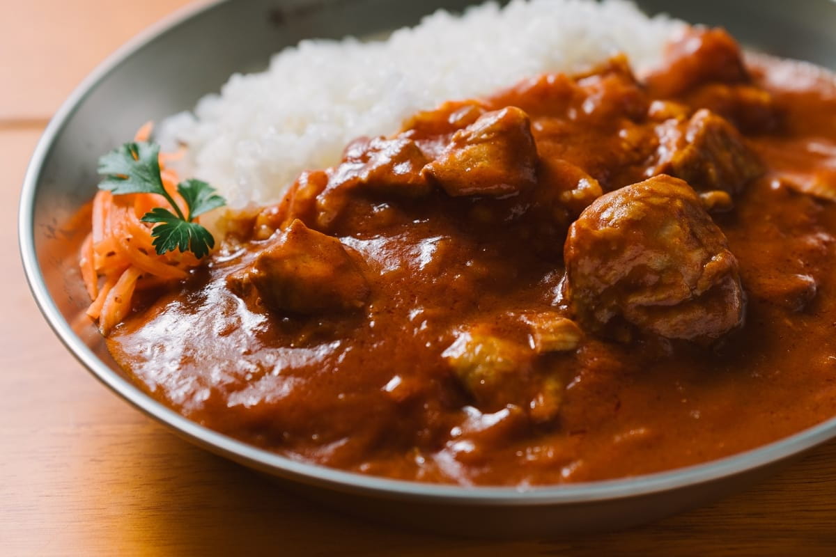 口当たり滑らか、濃厚なバターチキンカレー。上質な鶏肉とカルダモンなどの多彩なスパイスとバターのまろやかさが絶妙に調和し、贅沢な味わいが広がります。お子様でも食べやすい味に仕上げました。