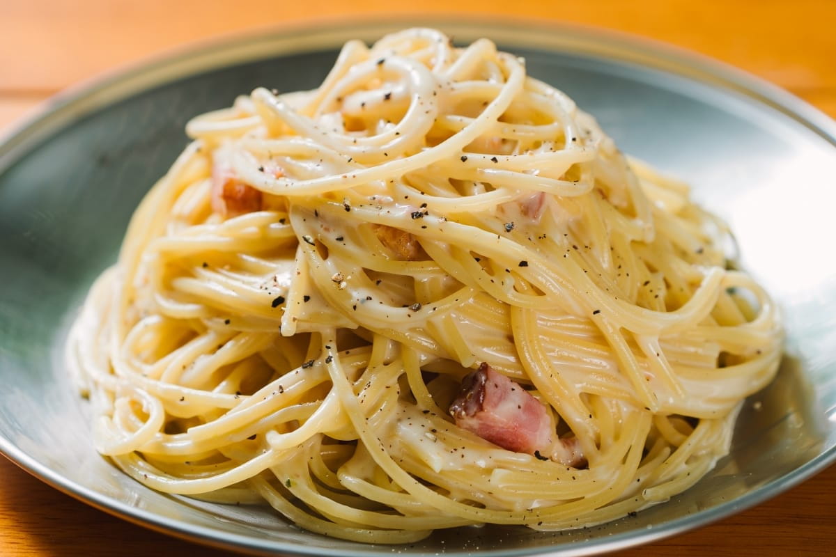 大き目にカットしたベーコンを使用し卵黄、生クリームで濃厚でコクのあるソースに仕上げました。ブラックペッパーの後味がほど良いアクセントに。贅沢な一皿をお楽しみください。