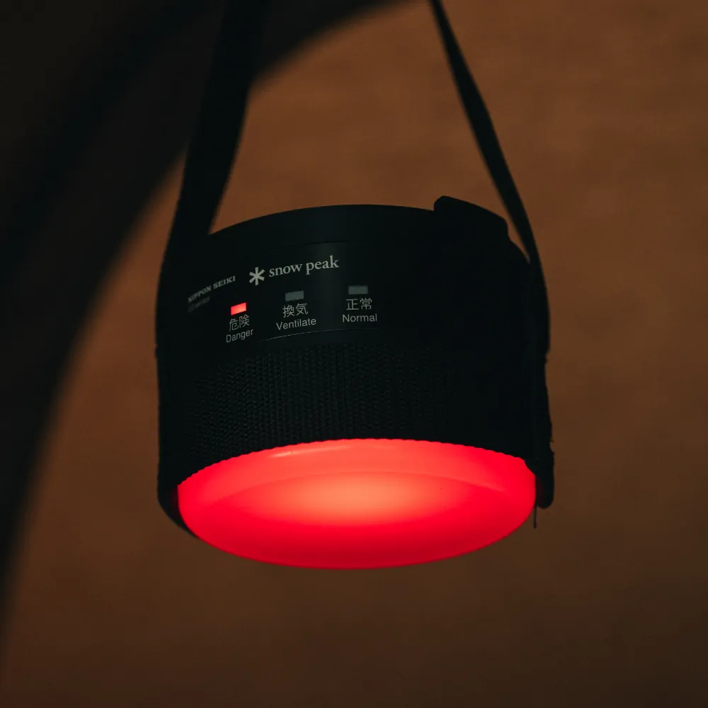 無色無臭の一酸化炭素を検知し、音と光で警告します。一酸化炭素は視覚や嗅覚で感知が難しく、寒い時期のキャンプなどで石油ストーブや薪ストーブの使用が普及する中、事故を未然に防ぐために開発しました。厳しい安全基準値を設定しているため、より素早く異常を検知し対策を促します。安心して冬のキャンプを楽しむための必須アイテムです。