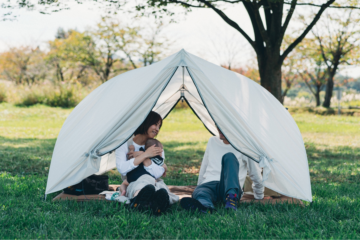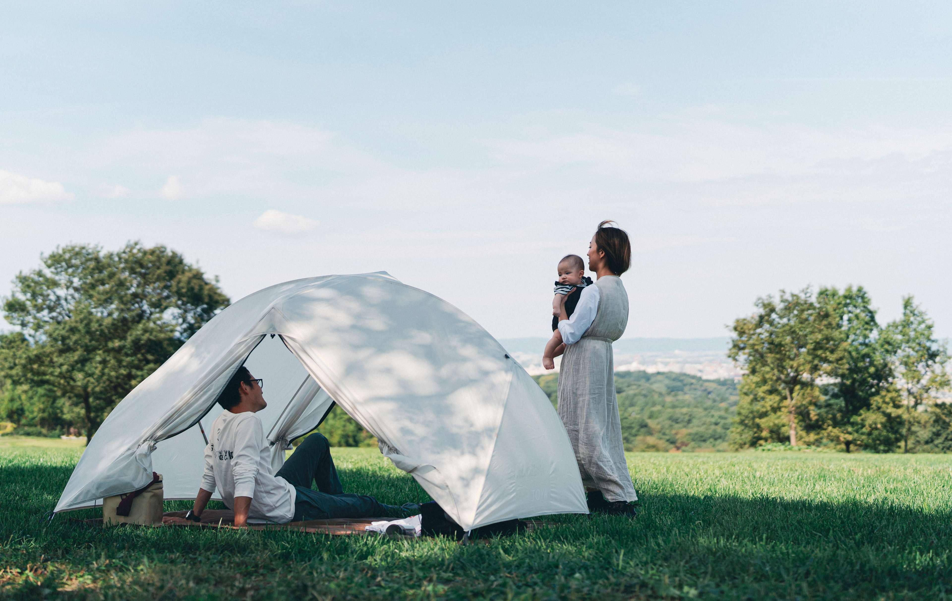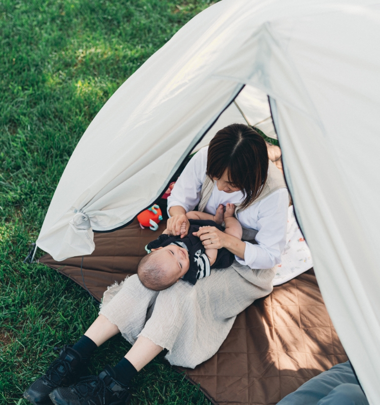 昼下がりの公園でピクニックを楽しむご家族に、キャンプならではの醍醐味でもある、居住空間を自分たちでつくりあげる体験を提供したい。そこからToya 2の開発が始まりました。フレーム、フライシート、フロアシートの3点だけで構成され設営・撤収のしやすさを実現。ベルトを引っ張ることでフレームにテンションをかけ立ち上がる仕組みを採用するなど、未経験者が簡単に設営できるのも特徴です。