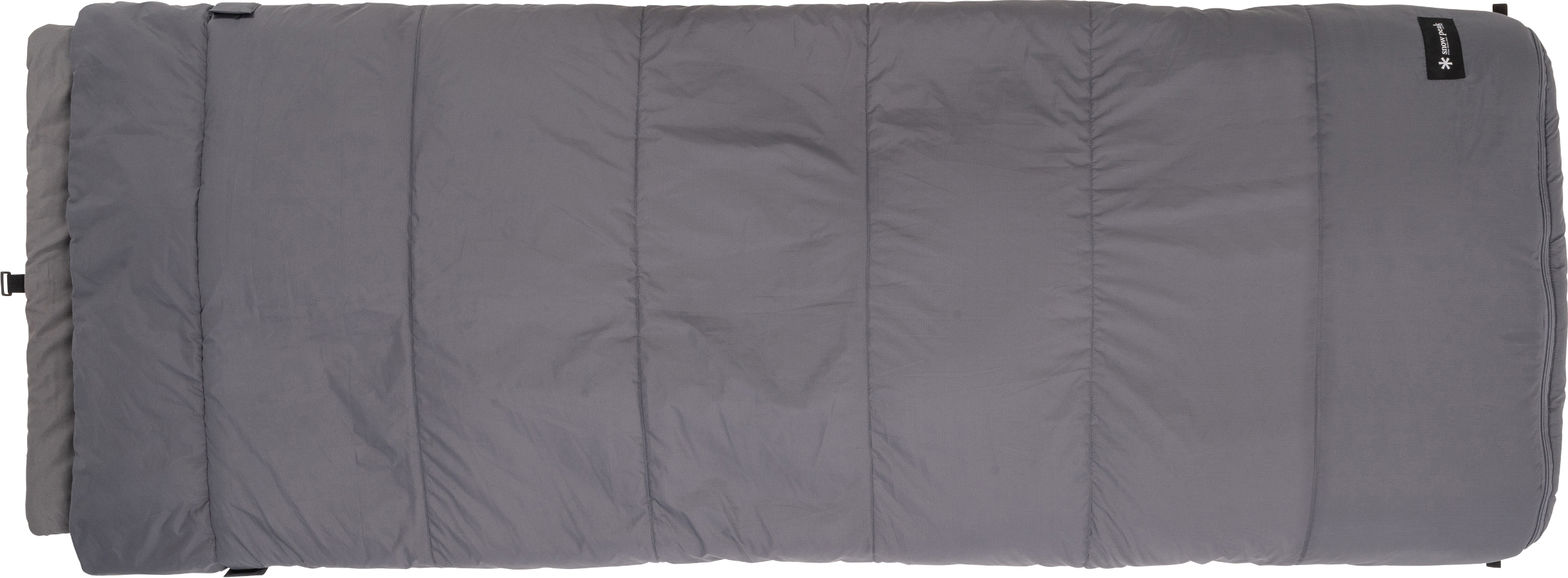 このクローズドセルマット付きのシュラフは、設営時はケースから出して広げるだけで完成。撤収時も、足元から丸めてコンプレッションベルトで締めるだけ。背面のマットが円柱形状を保持してくれるので、詰める際に型崩れしにくく、収納ケースをかぶせてジッパーで閉じるだけで簡単に片付けることができます。
