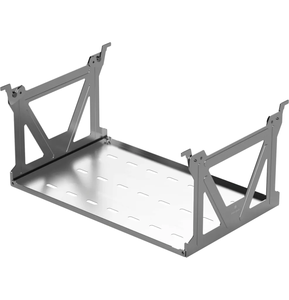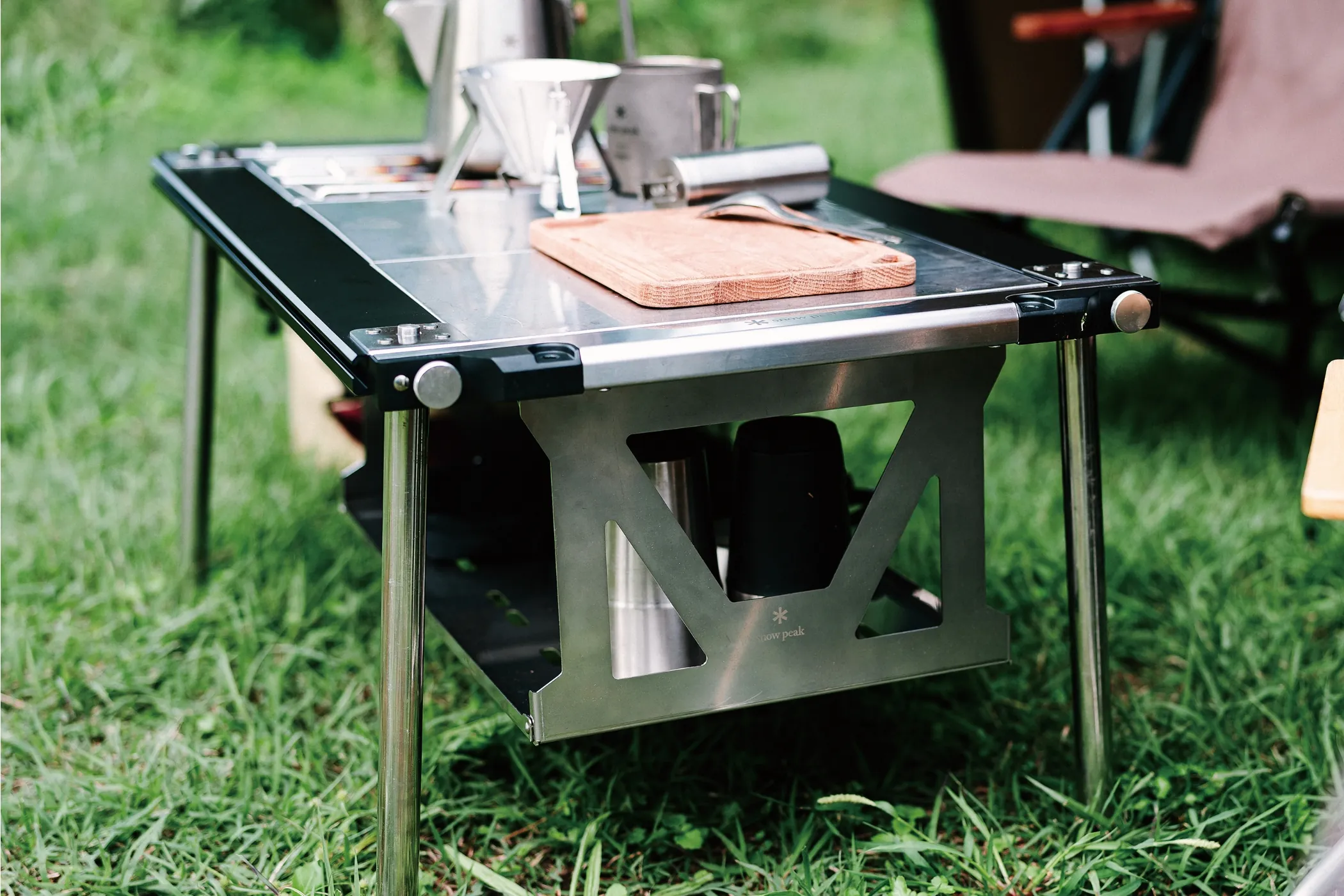 IGTフレームにセットし、テーブル下の空間を有効活用できるラック。400/660/830脚に対応します。収納や設置が容易な、折り畳み式を採用。水切りができるよう、プレートには穴が開いています。調理器具や食材などを手に届く範囲に置くことができ、より快適なキャンプを実現します。