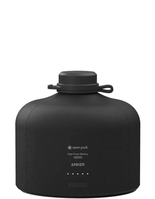 キャンプにモバイルバッテリーを持ち込むことも珍しくない昨今。 アンカー・ジャパンとの共同開発で、既存のシーンにはないスノーピークらしいモバイルバッテリーが誕生します。電池と同じ”パワーの供給源”であるガスカートリッジを模した、キャンプシーンに馴染むデザイン。バッテリー容量は15,000mAh/30,000mAhの2種をラインアップし、30,000mAh モデルは USB-Cポートより最大65W出力が可能で、幅広いモデルのノートPCの充電にも対応します。いずれも耐久性と安全性に優れた長寿命な「リン酸鉄リチウムイオン電池」をバッテリーセルに採用。これに合わせて、卓上を幻想的に演出するテーブルランタン「ギガパワーランタン TL」と、メイン使いができる最大1,000lm のハンギングライト「ギガパワーランタン HL」、非接触充電に対応したスマートフォン充電器「ギガパワーチャージャー」も登場します。