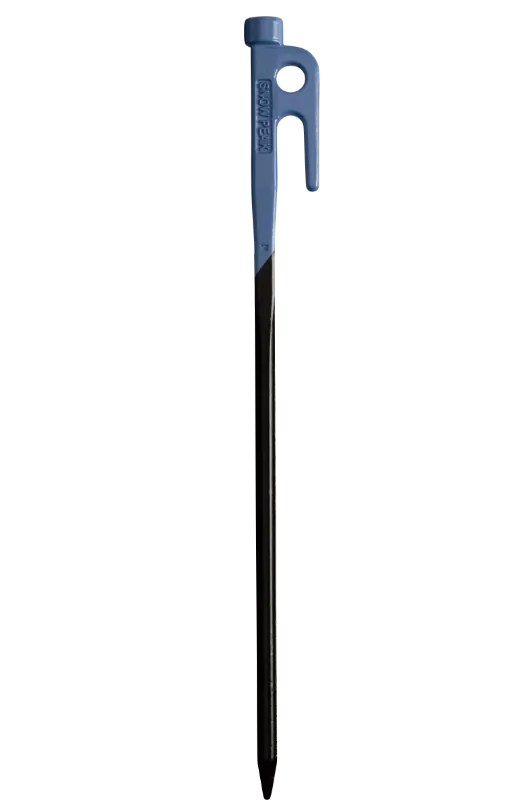 その名の通り、指で簡単に押し込める手軽なペグ。シェルター等のスカートに打ち込んで雨水の流れを良くしたり、レジャーシートが風で煽られるのを防いだりする際に便利です。ロープを通せるホール付き。断面がダイヤ型になっており、半回転ほど捻れば手で簡単に抜くことができます。