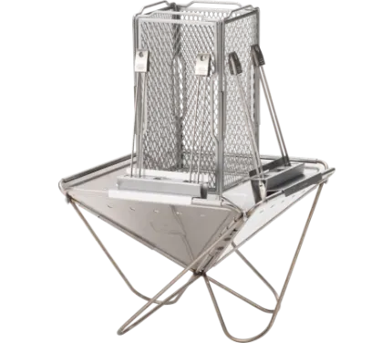 日本の伝統的調理法「原始焼き」を、焚火台Lで楽しめるアイテムです。食材を串に刺し、遠赤外線でじっくりと焼き上げることで余分な脂や水分が落ち、旨みが凝縮。魚や肉が格段に美味しくなります。焚火の炎を楽しみながら調理ができる点も魅力です。オプションのスキュアセットを使えば、最大8本まで串を追加できます。