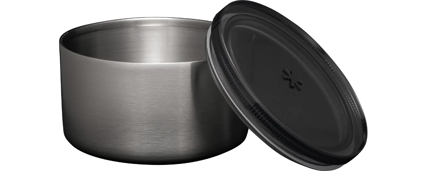茶葉やコーヒー豆、スナックなどを持ち運べる容器。蓋は遮光性のある染色トライタンを採用し、内容物への紫外線の影響を低減します。アウトドアで手軽にお茶を楽しめる「サヨウ」や、「チタンシングルマグ 450」「チタンダブルマグ 450」などのスノーピークの450ml容量のマグに収まります。