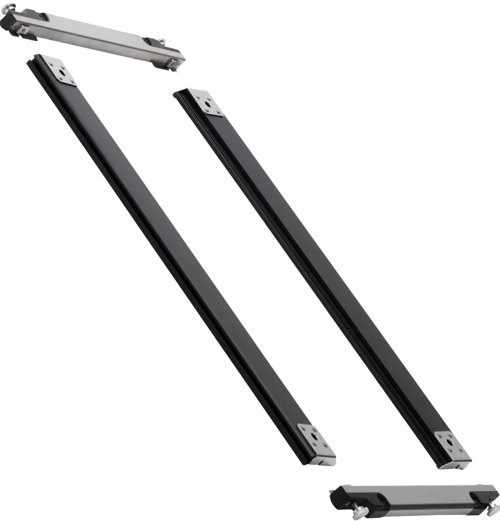 「ダイナミックな眺望を楽しめる」をコンセプトにした大型2ルームシェルター「ゼッカ」と同様に、リビング空間からの眺望を第一にデザインした「フービ」。「ゼッカ」よりもコンパクトに、2〜4名程度での使用に適したサイズとなっています。春には桜を見上げ、夏には満天の星空を、秋には鮮やかに色づく木々を。季節ごとの美しい自然の景色を一番に楽しんでもらうために、天面まで大きく開けることができるフロントパネルを採用しました。シェルターに包まれている安心感もありながら、タープ以上に自然とのつながりを感じられる圧倒的な開放感を実現しています。視界を遮らないことに徹底してこだわり、シールドルーフの前方もクリアルーフにしています。フロントパネルは、サイドでも上部でも留められる2WAY仕様。跳ね上げて空間を拡張することも可能で、ロケーションに合わせてバリエーションを楽しめます。また日差しの影響を受けやすい天井部分にはシールド加工を施し、遮光性を向上させています。強度を持たせるために、フレーム構造を再構築し、リッジフレームを後方に配置することで、視界や空間の広さと耐風性の両立を実現しています。インナールームは左右どちらにも設置可能で、両方にセッティングすれば最大4名での使用が可能です。