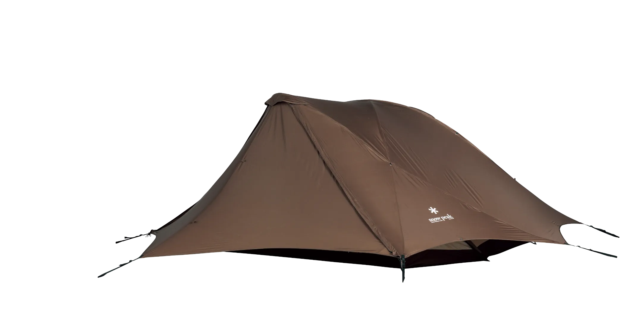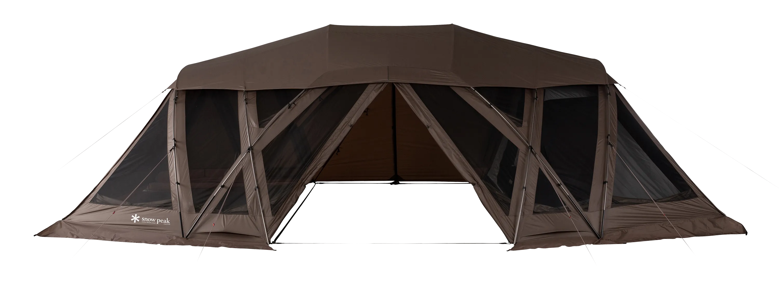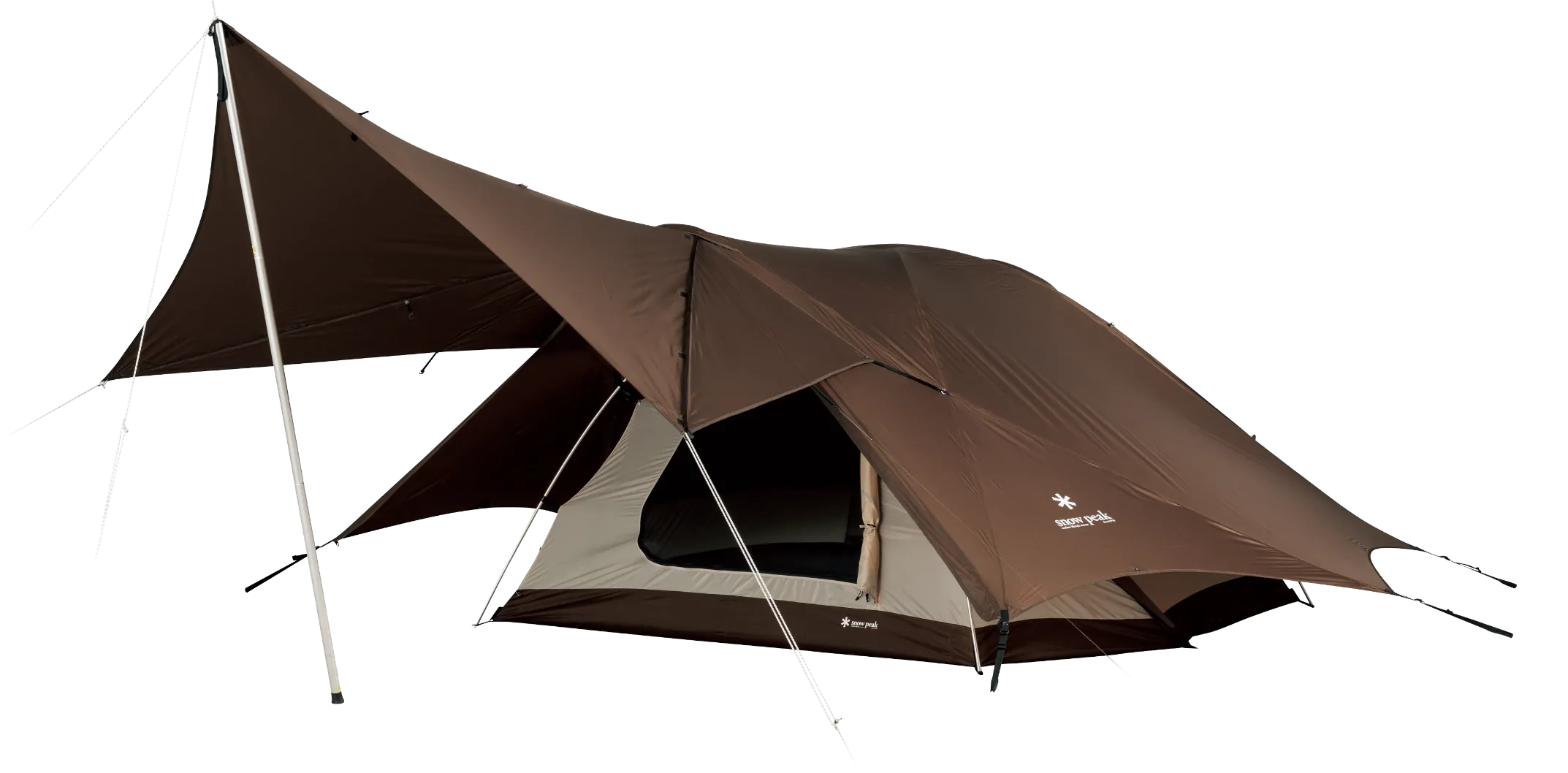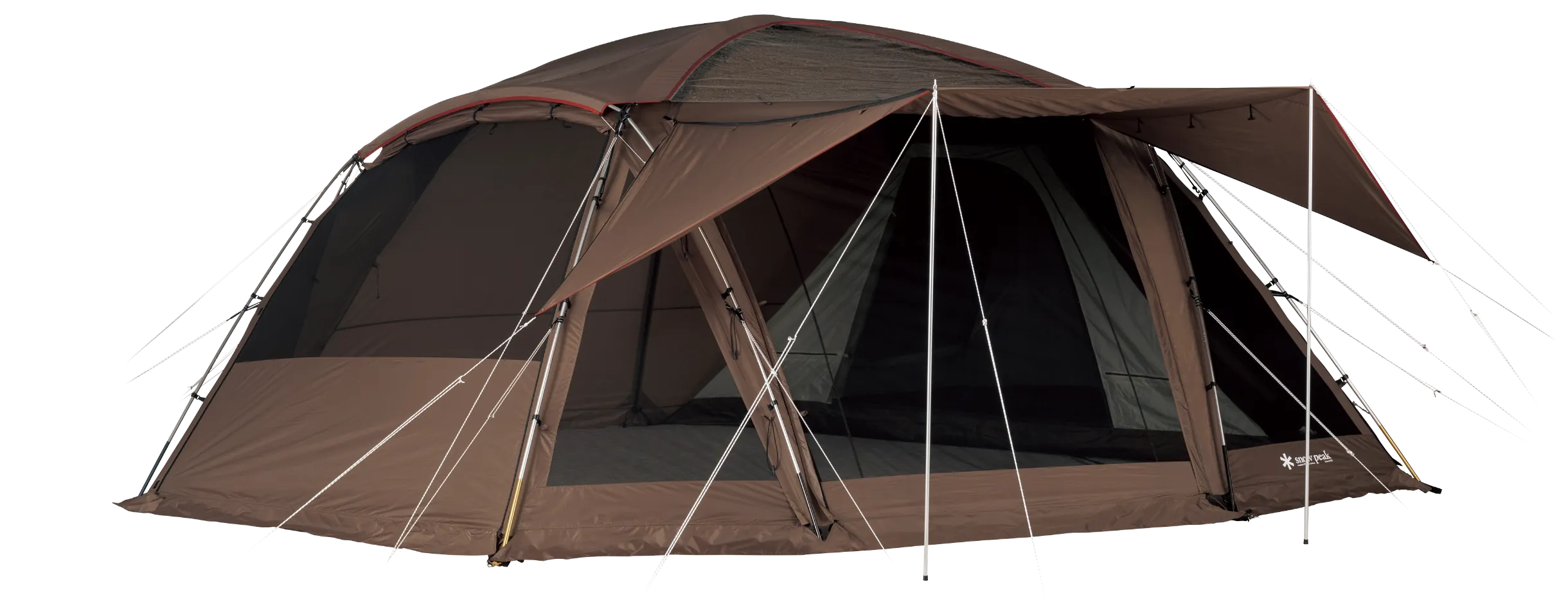 スノーピークのシェルターでは最大クラスのサイズと、薪ストーブをシェルターの中央に配置する特徴的な設計で、複数人のグループでもゆとりをもってストーブを囲むことができます。本体には、建てやすく風に強い頑丈なフレームワークと、既存のPro.ラインの幕体とは異なる、より薄く丈夫なポリエステルのリップストップ生地を採用しています。さらに、綿を混紡した火の粉に強いTCフルフライシートを上から重ねる、シェルターとしてはスノーピーク史上初の完全二重構造も大きな特長です。幕と幕の間に空気の層が生まれることによって、外気温の影響を受けにくい上に、空気の循環を促進させています。さらに本体とフルフライシートも、それぞれに複数のベンチレーションを備えています。これによって万が一、煙が発生しても幕内に残りにくい仕様となっています。
