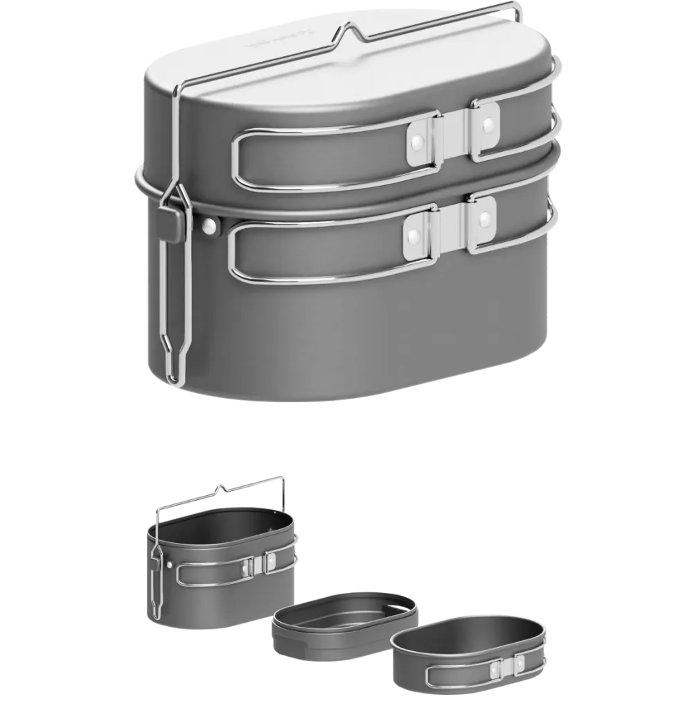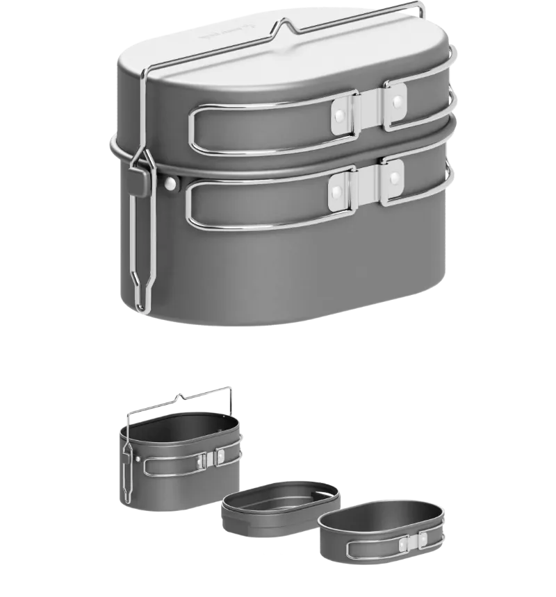 「曲げわっぱ」をモチーフにした形状。 「ギガパワーストーブ レクタ」やガスカートリッジ、カトラリーをまとめて収納し、携行できるクッカー。ポット、リッドでの調理が可能なうえ、ポットの蒸気を利用してナカゴでも蒸し料理を行える、同時調理に対応。お米を最大4合炊飯でき、1台で2~3人分の食事を作ることが可能です。