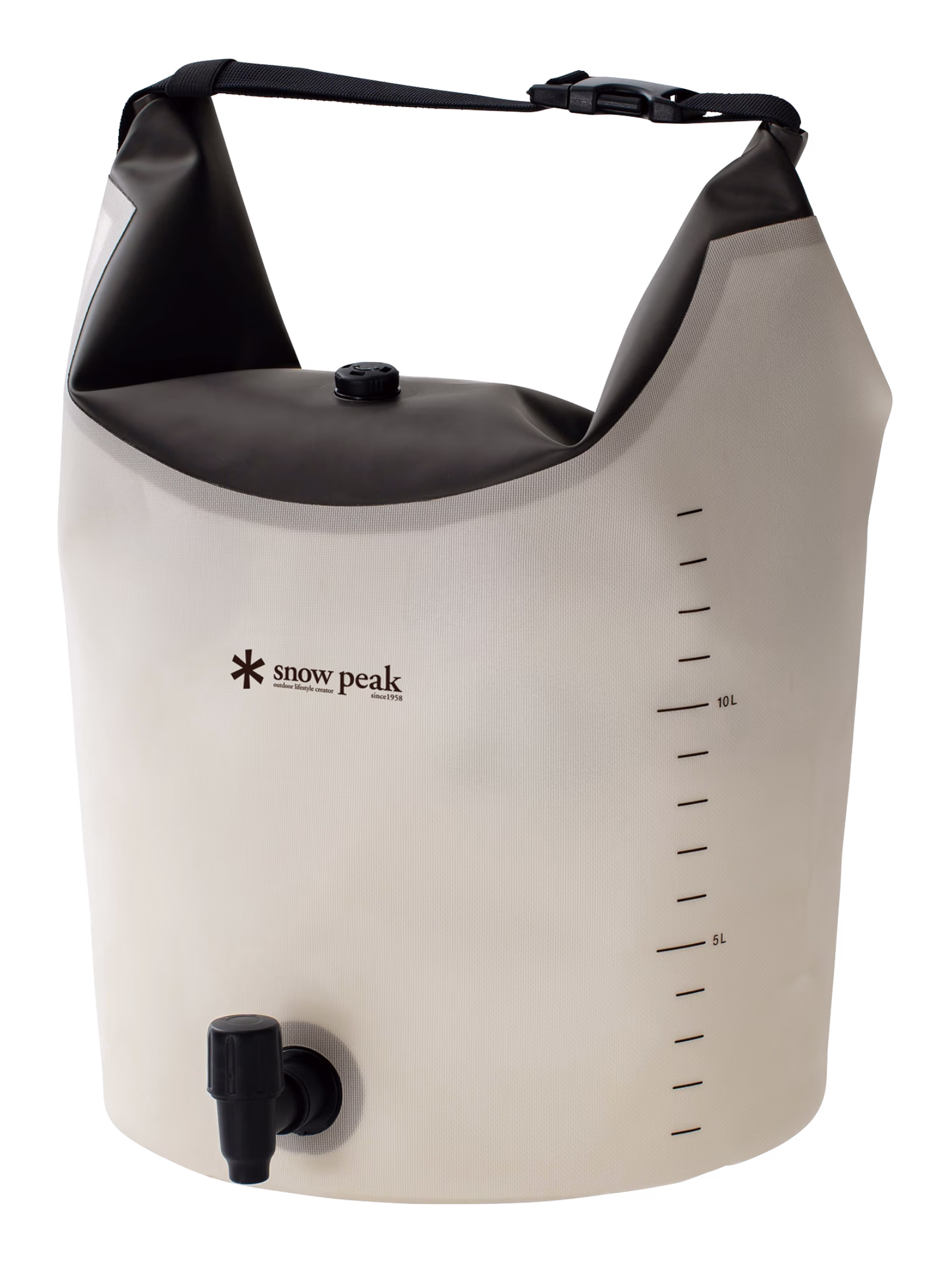容量は14Lで、4~5人の1泊キャンプでも安心して使えるウォータージャグです。柔らかく耐久性の高いTPU素材を採用し、くるくると丸めるだけでコンパクトに収納することができます。大容量でありながら車載時や保管時に場所を取らない設計です。