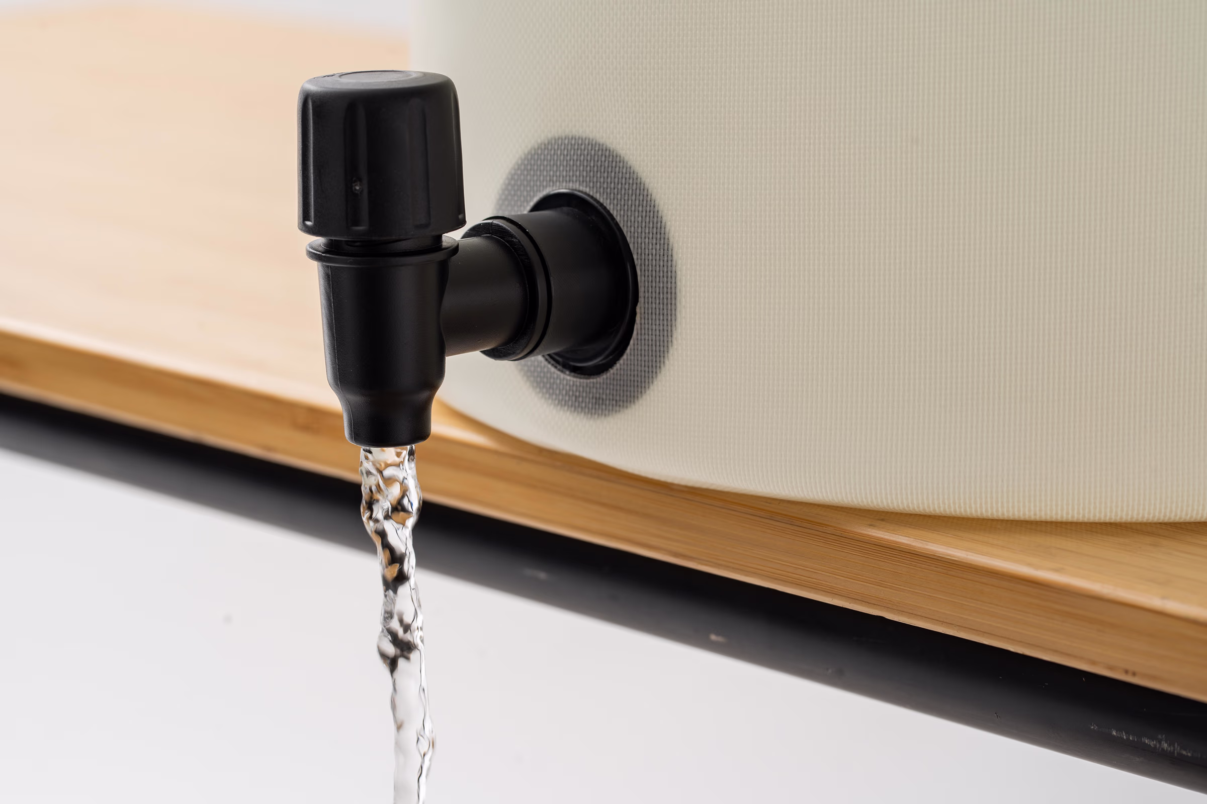 本体には、環境負荷が比較的少なく、丈夫で柔らかな840デニールのTPU素材を採用。樹脂パーツは蛇口、空気弁、ストラップパーツのみで軽量・耐久性に優れています。