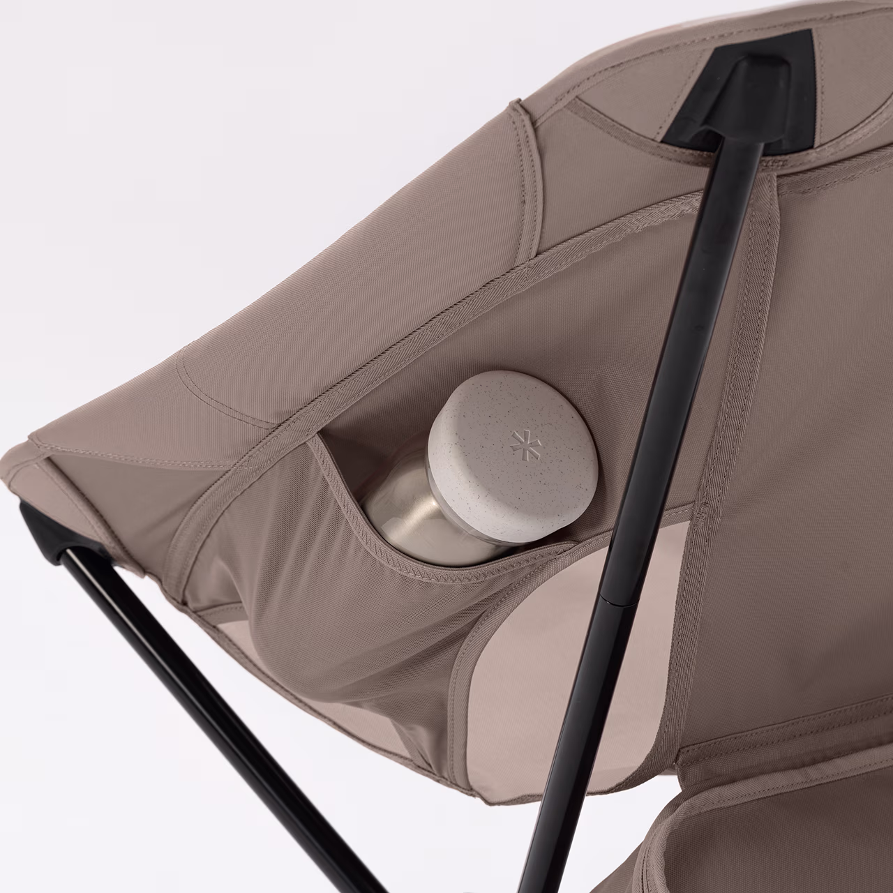 チェアの両サイドには、小物類を入れられるメッシュポケットが備わっています。「ステンレス真空ボトルタイプM500」が収まるサイズに設計しています。