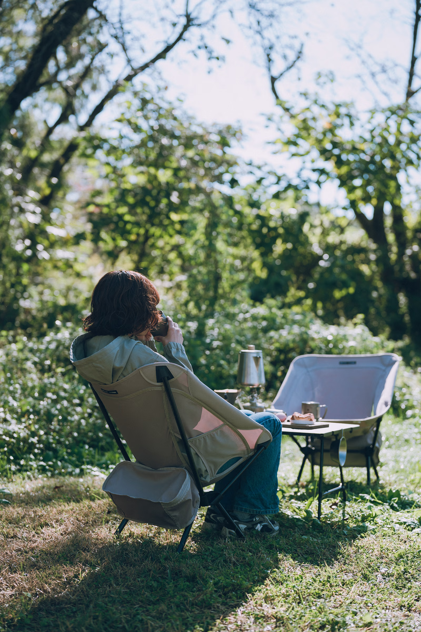 軽量で収納性に優れたアウトドアファニチャーブランド「Helinox(ヘリノックス)」との、初のコラボレーションアイテム。両社がこれまでに培ってきた知見を融合し、快適性をさらに高めた新たな折り畳みチェアが誕生しました。「Helinox」で定評のあるチェアをベースに、フレームをより太く設計することで安定性を向上。