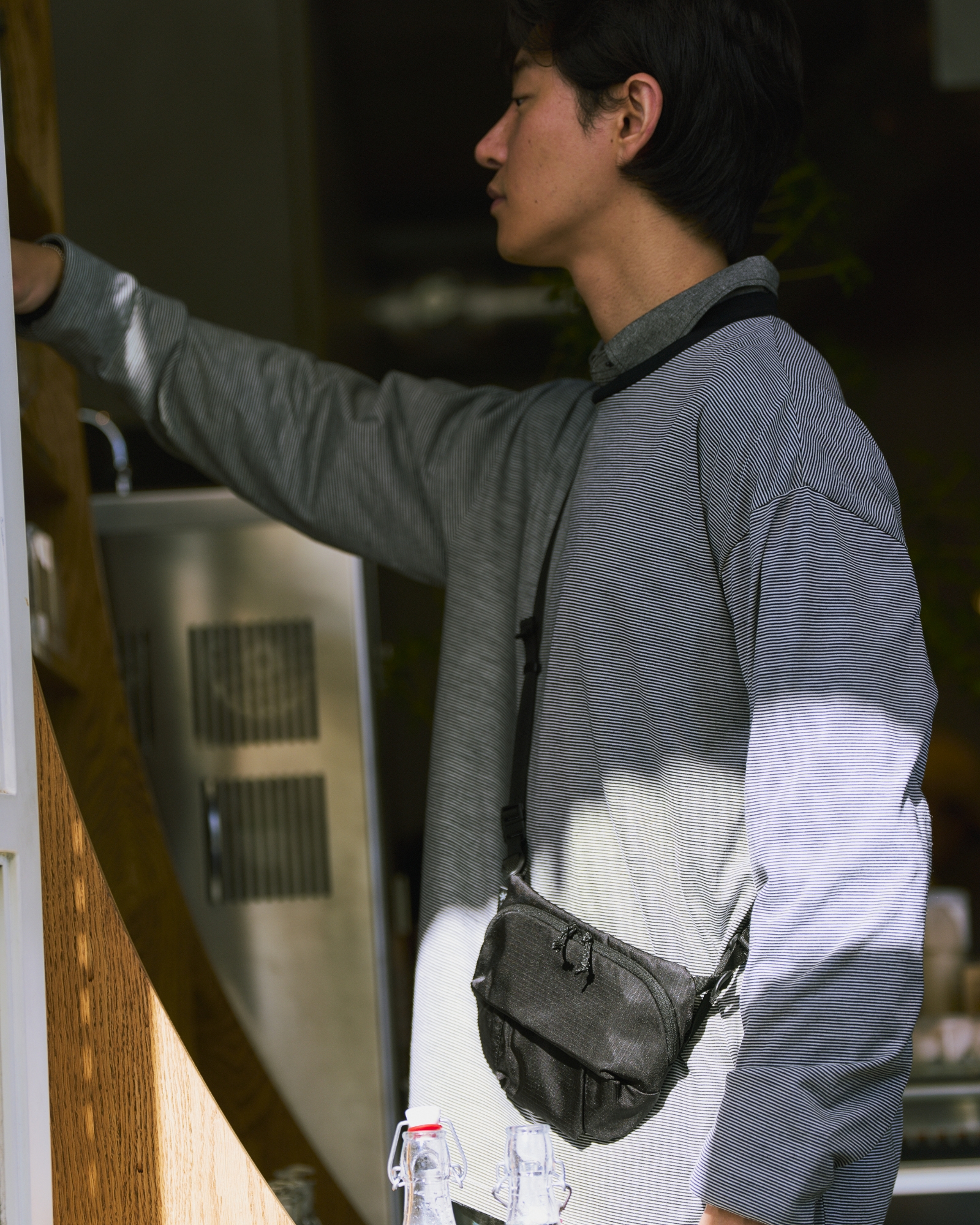 メイン素材には、タフさと軽快さを兼ね備えた生地を使用し、必要な持ち物を無理なく収められるサイズ感に設計。シンプルで取り入れやすいデザインは、シーンやスタイルを問わず活躍します。