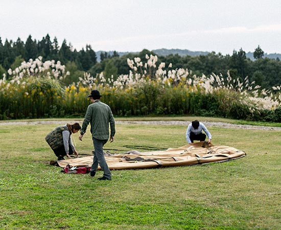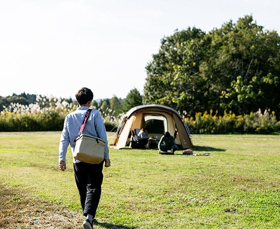 まずは寝室となるテントを探しに来られる方がたくさんいます。