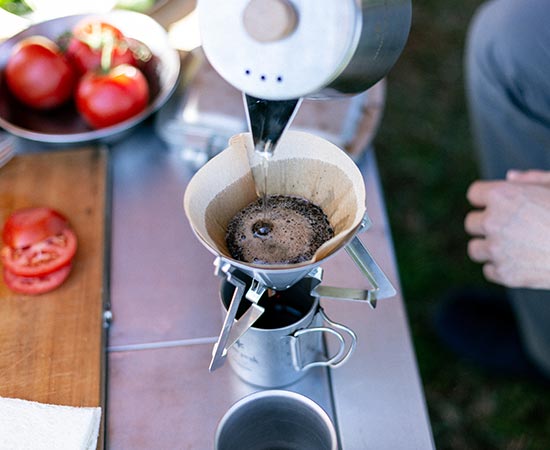 いつもと違う朝の目覚めを迎えたら、まずは朝食の準備から。挽きたてのコーヒーの香りが食欲を誘います。キャンプサイトの撤収はゆっくり楽しみながら行ってみましょう。