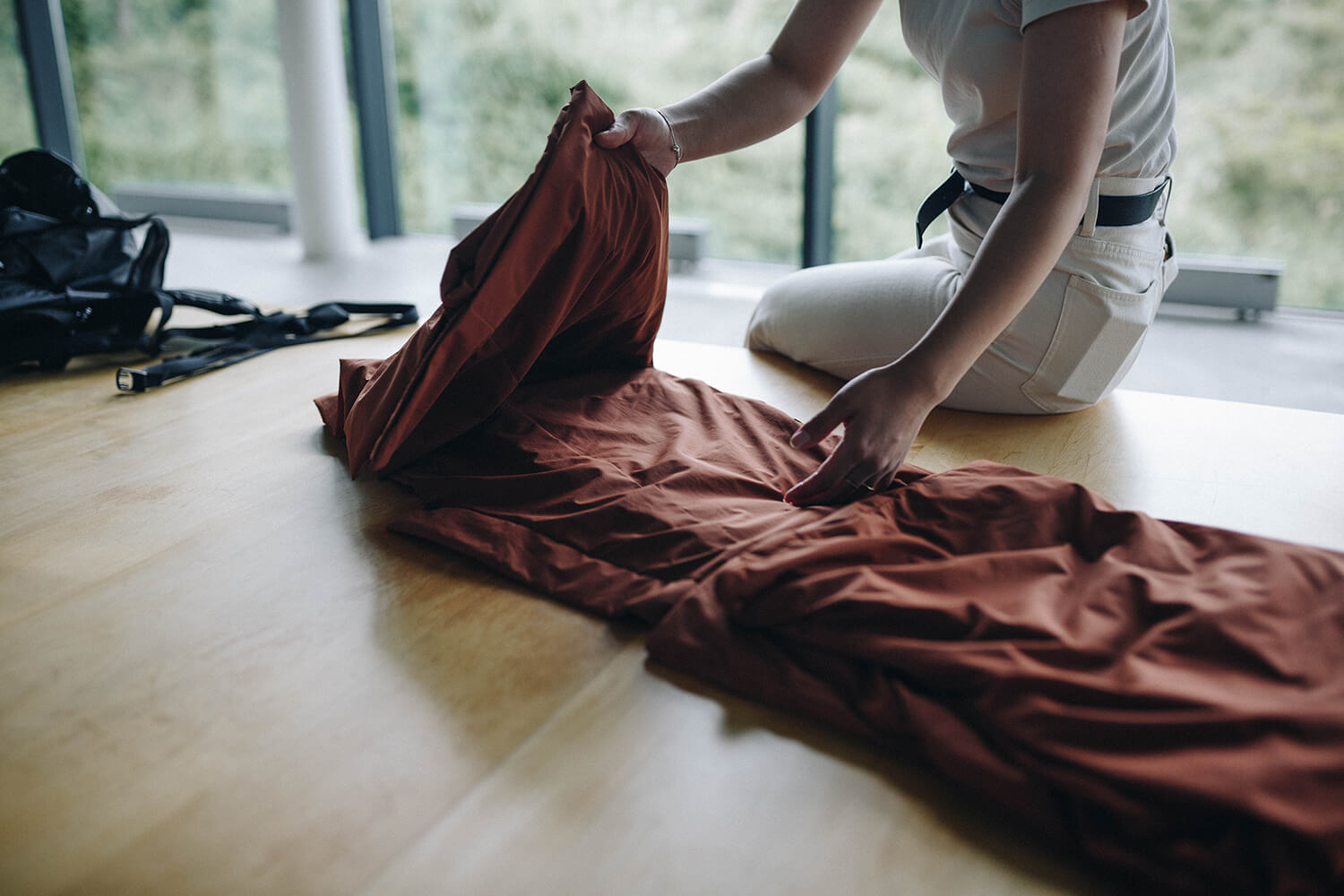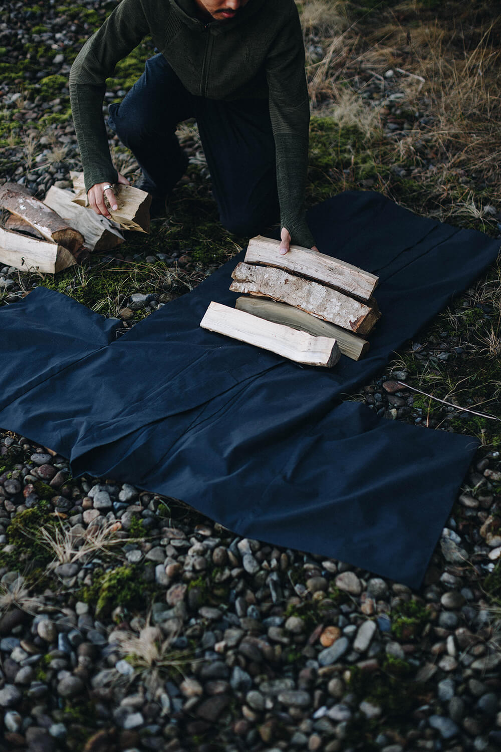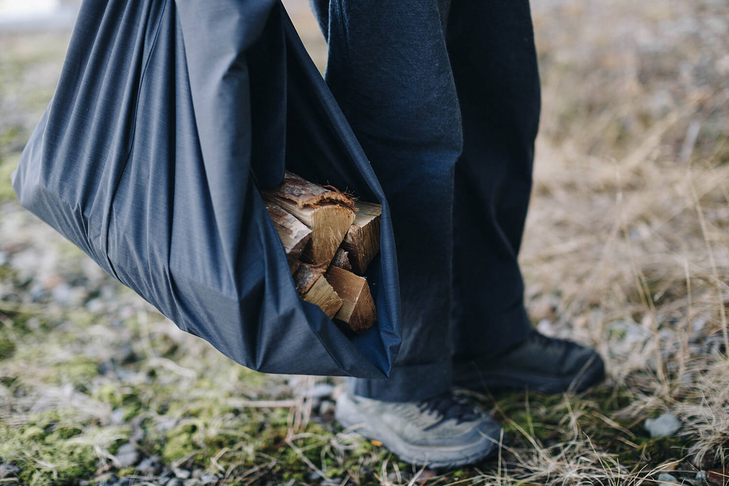 今回の2019年秋冬モデルには、ポリエステルをベースに耐摩耗性に優れたアラミド繊維を混紡したリップストップ素材を採用。生地表面には撥水、裏面には防風加工を施しており、軽量でありながら様々な天候に対応します。通常のポリエステルに比べて難燃性にも優れているため、着物を着て焚火を楽しむことも可能です。
