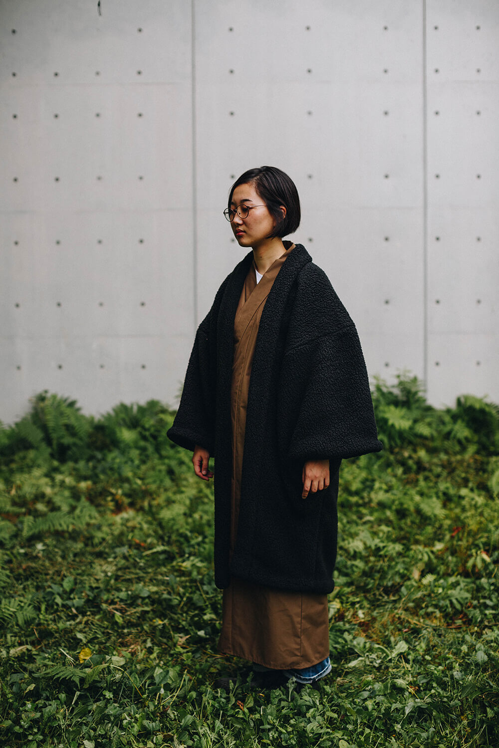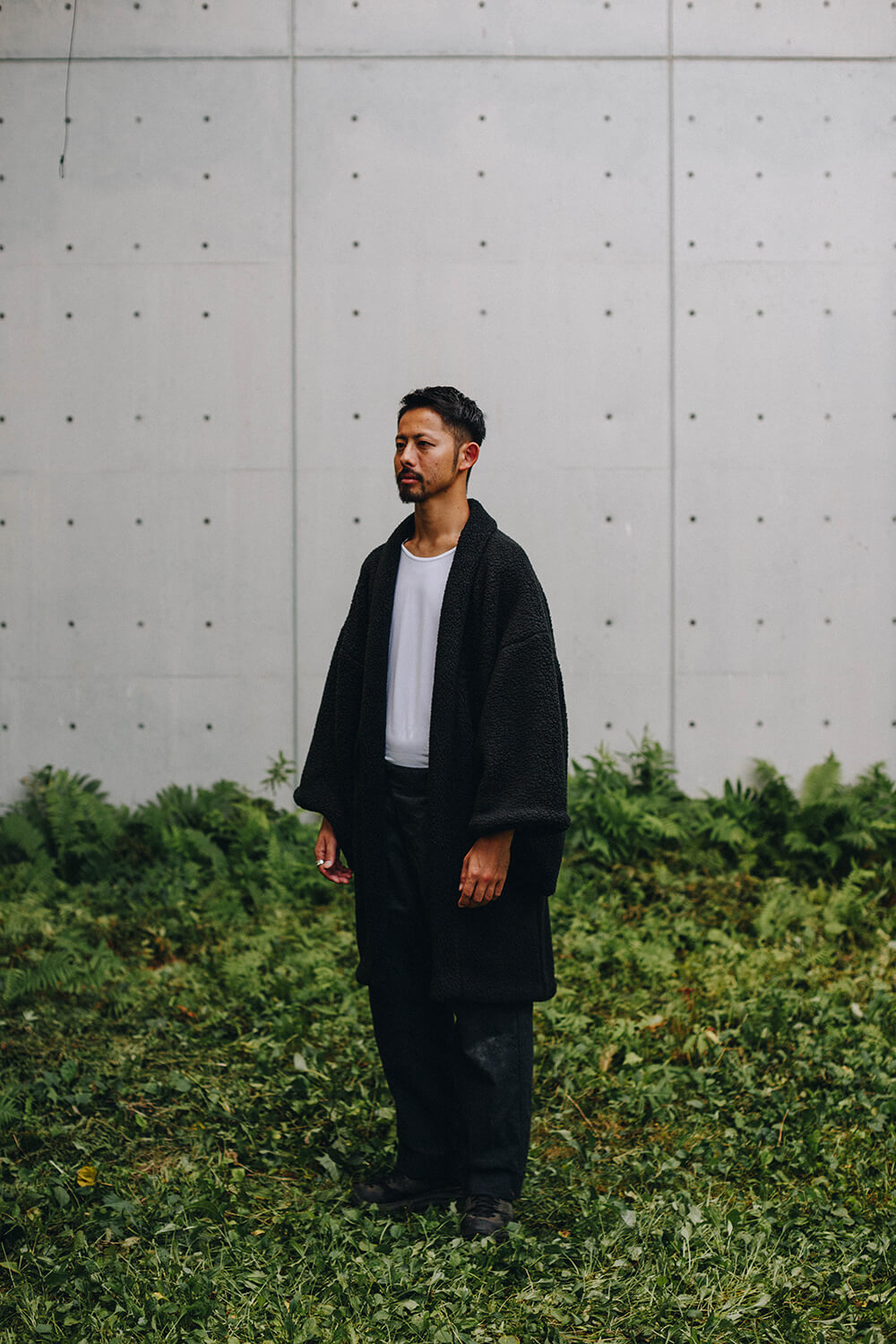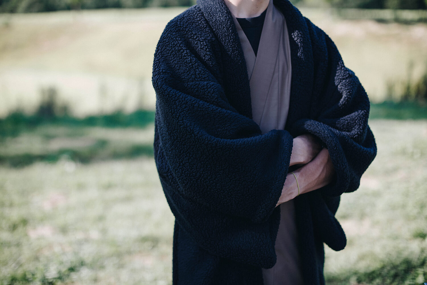 さらに今回は着物に加えて初めて羽織を製作。素材にはPOLARTEC®社のボアフリースを採用。ポリエステル素材の為、見た目のボリュームに反して軽く、保温性と通気性に優れており、着物のうえから羽織ることで、寒い時期のアウトドアシーンでも楽しむことが可能となりました。