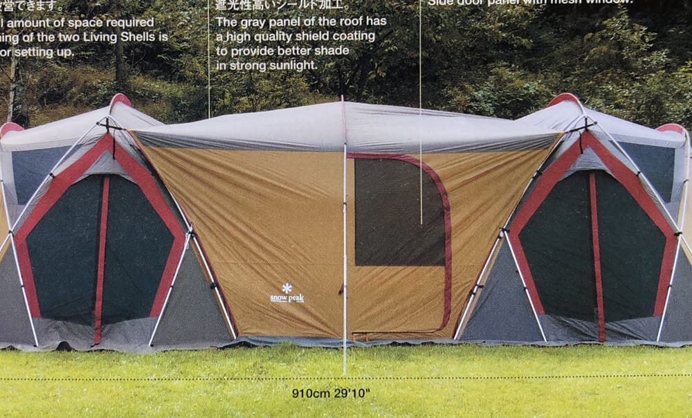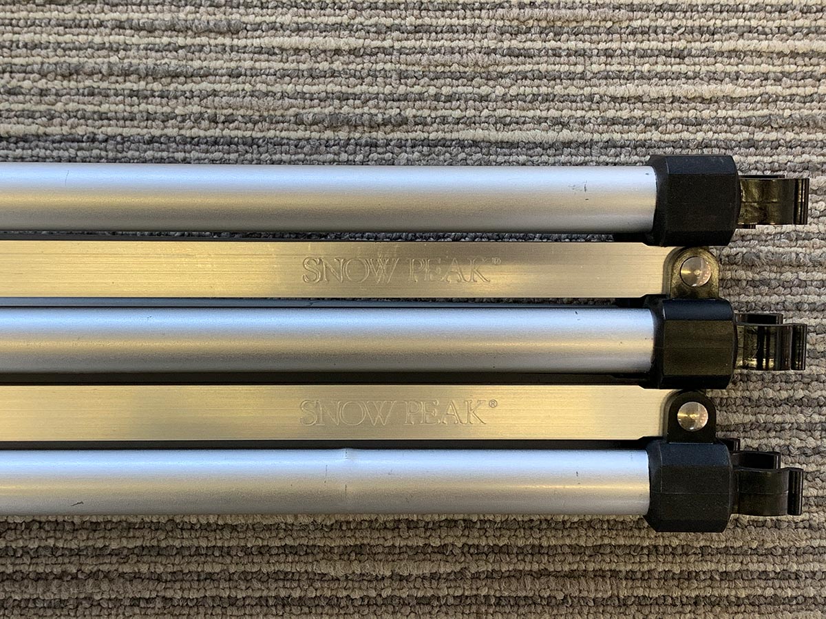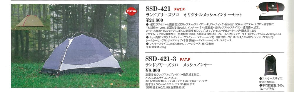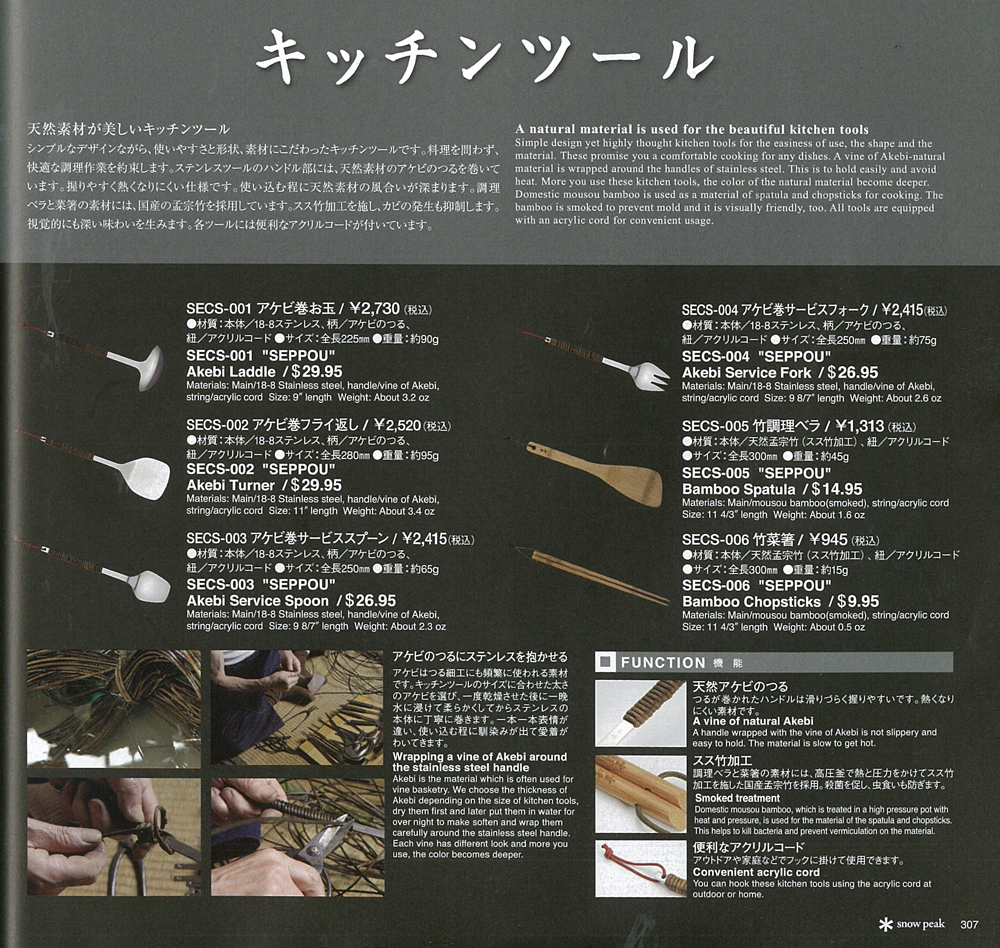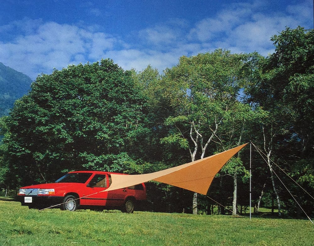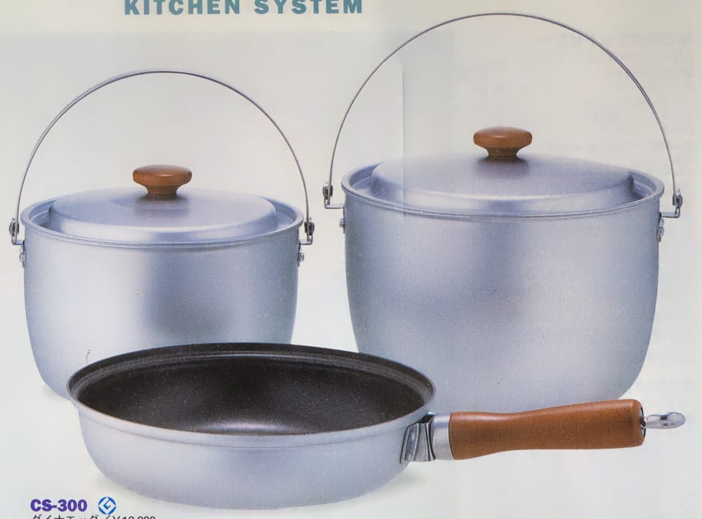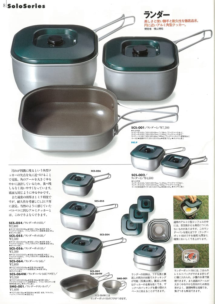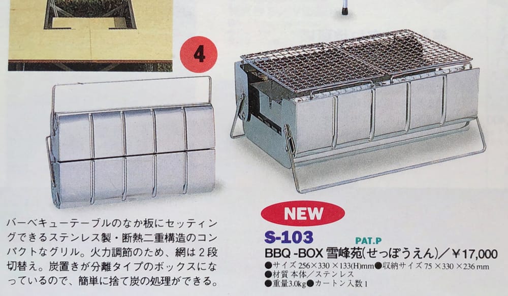 90年代に入ると、快適基準寸法という独自のサイジングを製品にデザインして、フィールドにおけるリビング・キッチン・ベッドルームというシステムを構築し、新しいライフスタイルの提案をしました。スノーピークはキャンピングギアのパイオニアメーカーとして日本のアウトドアシーンに完全に定着しました。ロゴマークは織ネームとしてタープやテントに付くだけでなく、テーブルの天板にも焼き印として刻まれました。