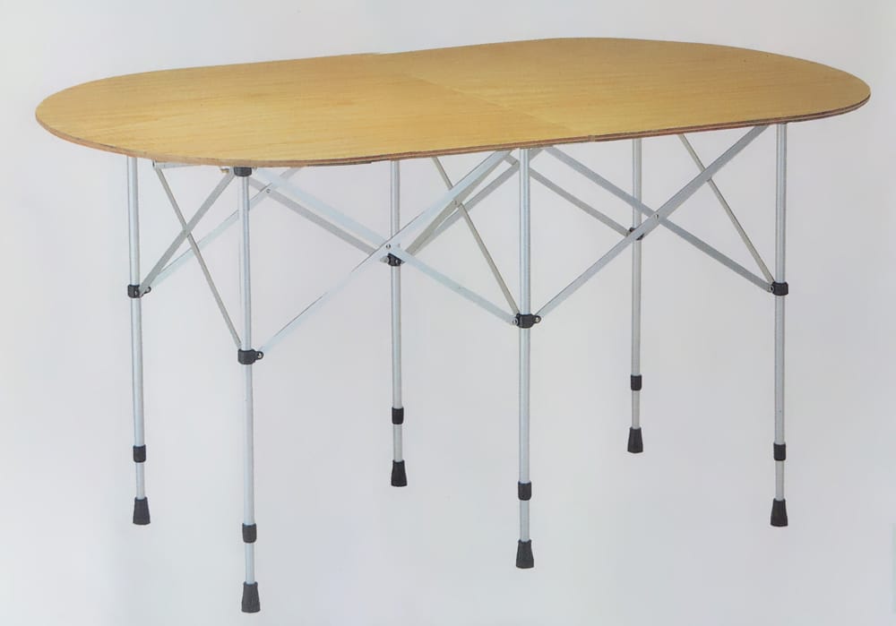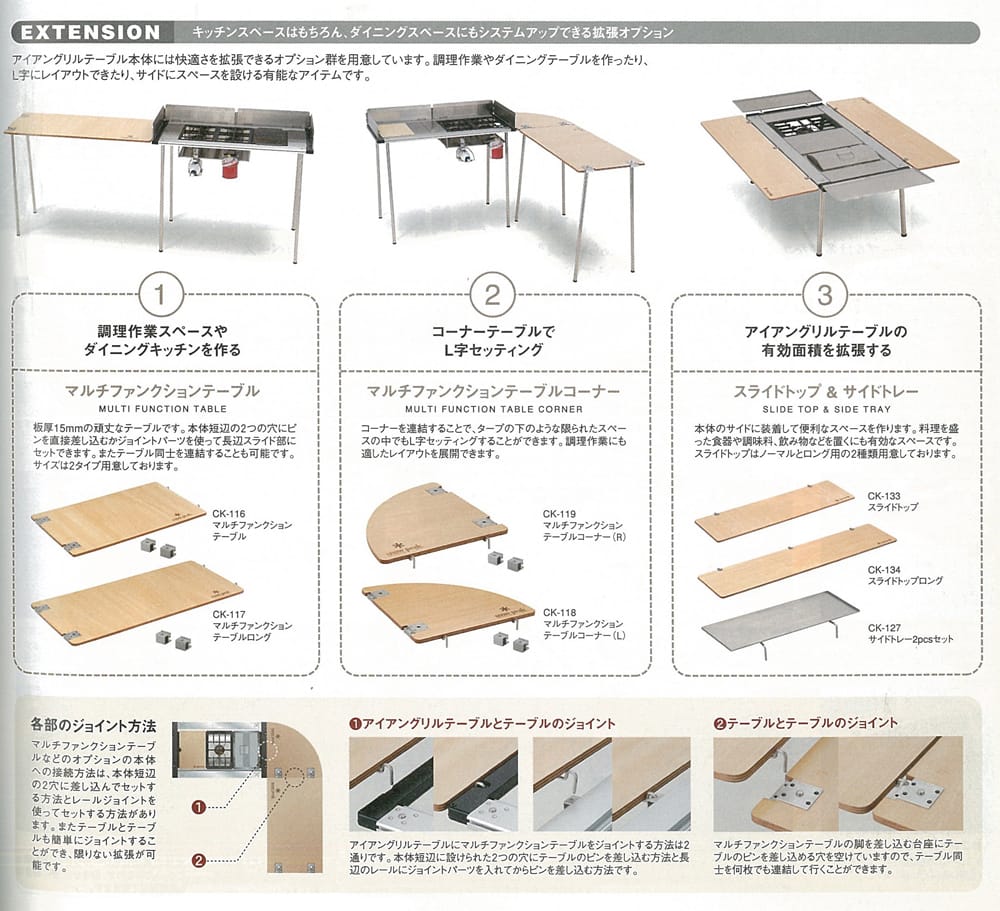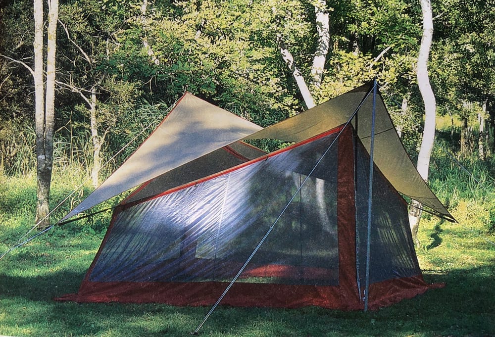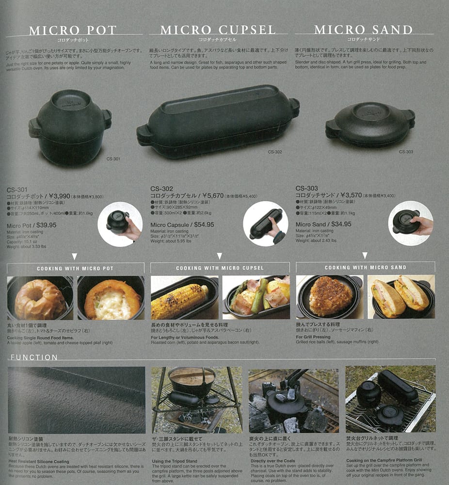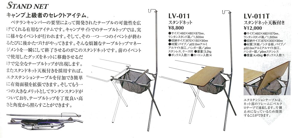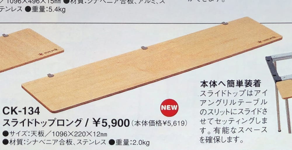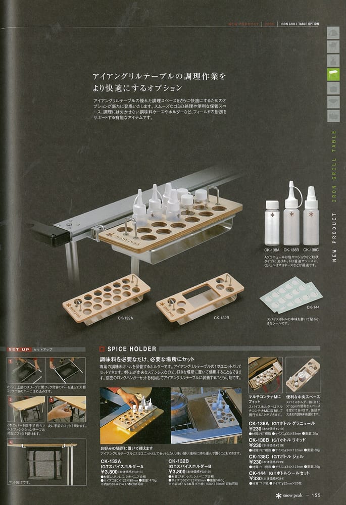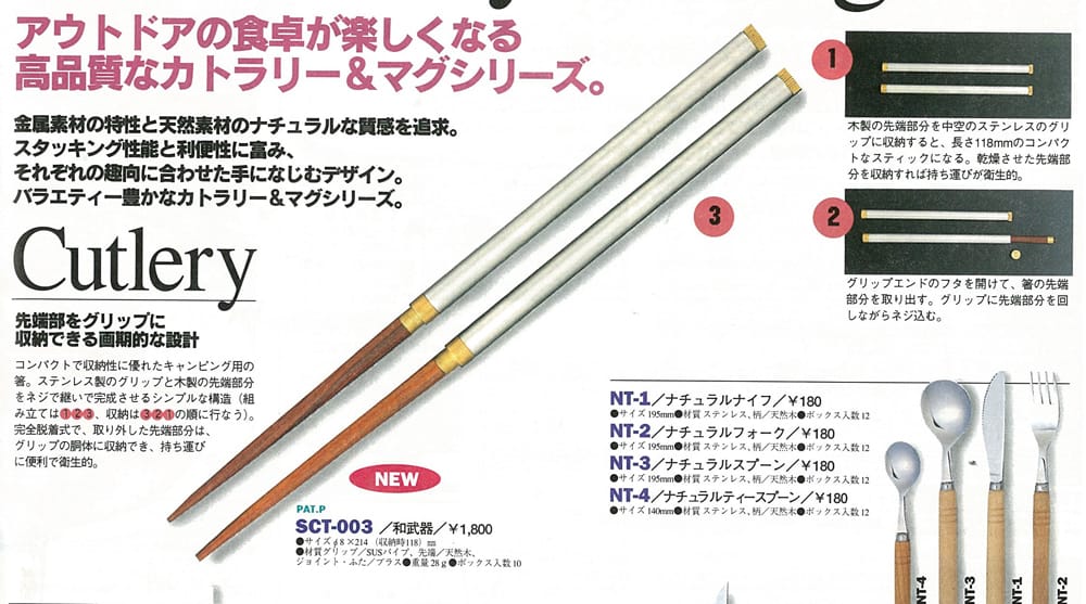 90年代に入ると、快適基準寸法という独自のサイジングを製品にデザインして、フィールドにおけるリビング・キッチン・ベッドルームというシステムを構築し、新しいライフスタイルの提案をしました。スノーピークはキャンピングギアのパイオニアメーカーとして日本のアウトドアシーンに完全に定着しました。ロゴマークは織ネームとしてタープやテントに付くだけでなく、テーブルの天板にも焼き印として刻まれました。