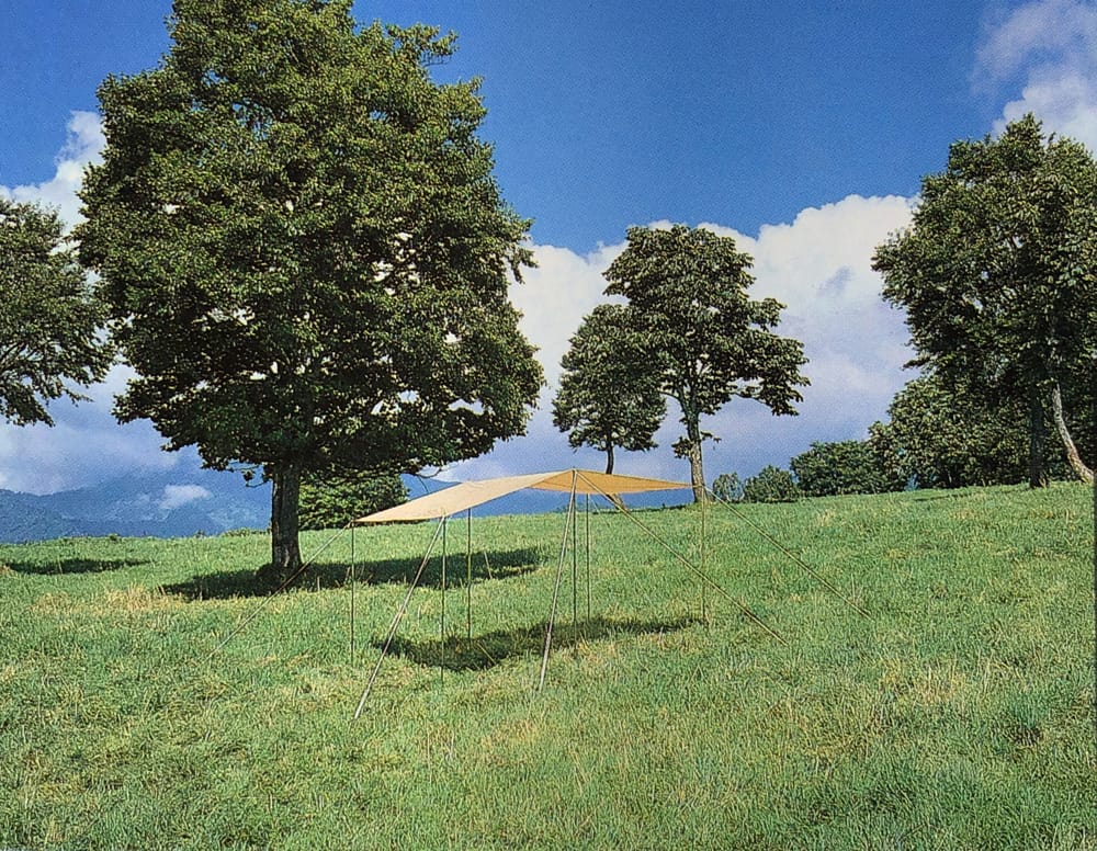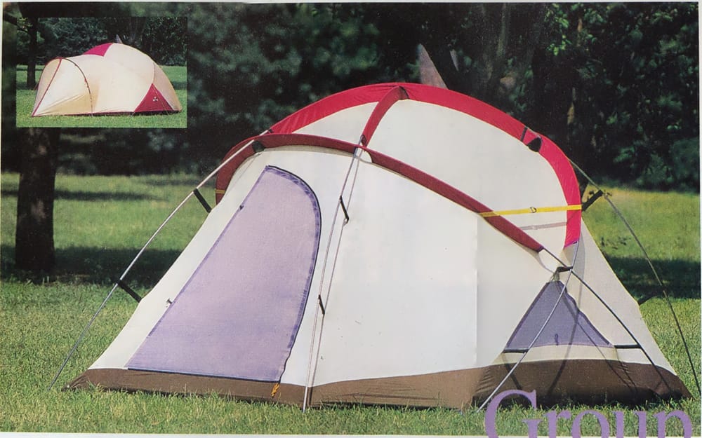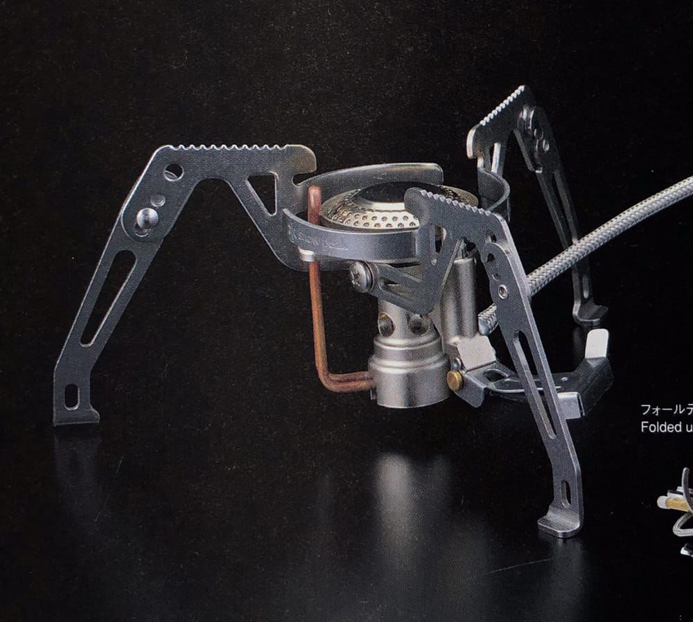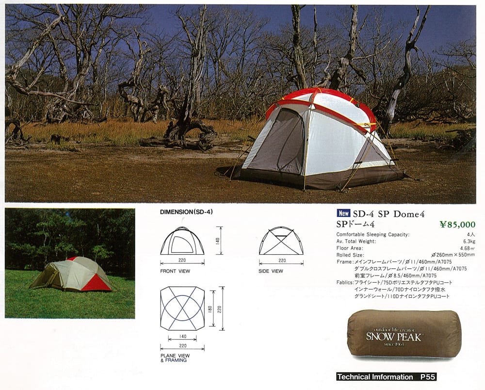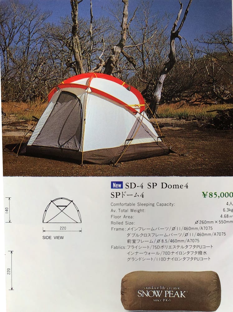 雪山のロゴマークはスマートにデザイン処理を施しました。1986年に現社長 山井太が入社し、翌'87年三条市三貫地に移転するとともに、スノーピークの代表的な商品である “マルチスタンド” をリリース、オートキャンプ用品を本格的に開発、初代フォールディングチェアの背もたれにもこのロゴマークの織ネームが輝かしく付けられました。