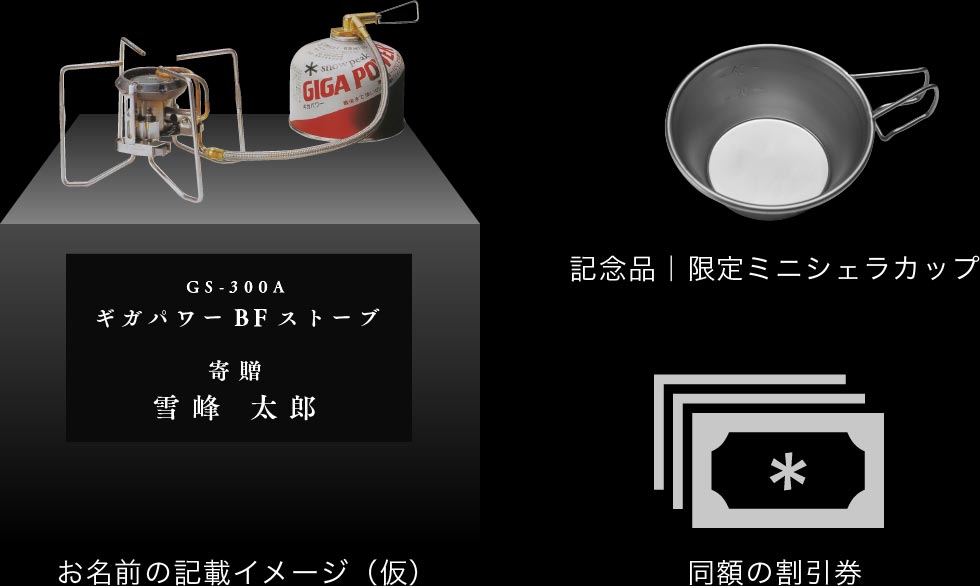 ご提供くださる方には、寄贈者としてお名前を記載させていただくとともに、製品販売価格と同額の割引券を進呈させていただきます。