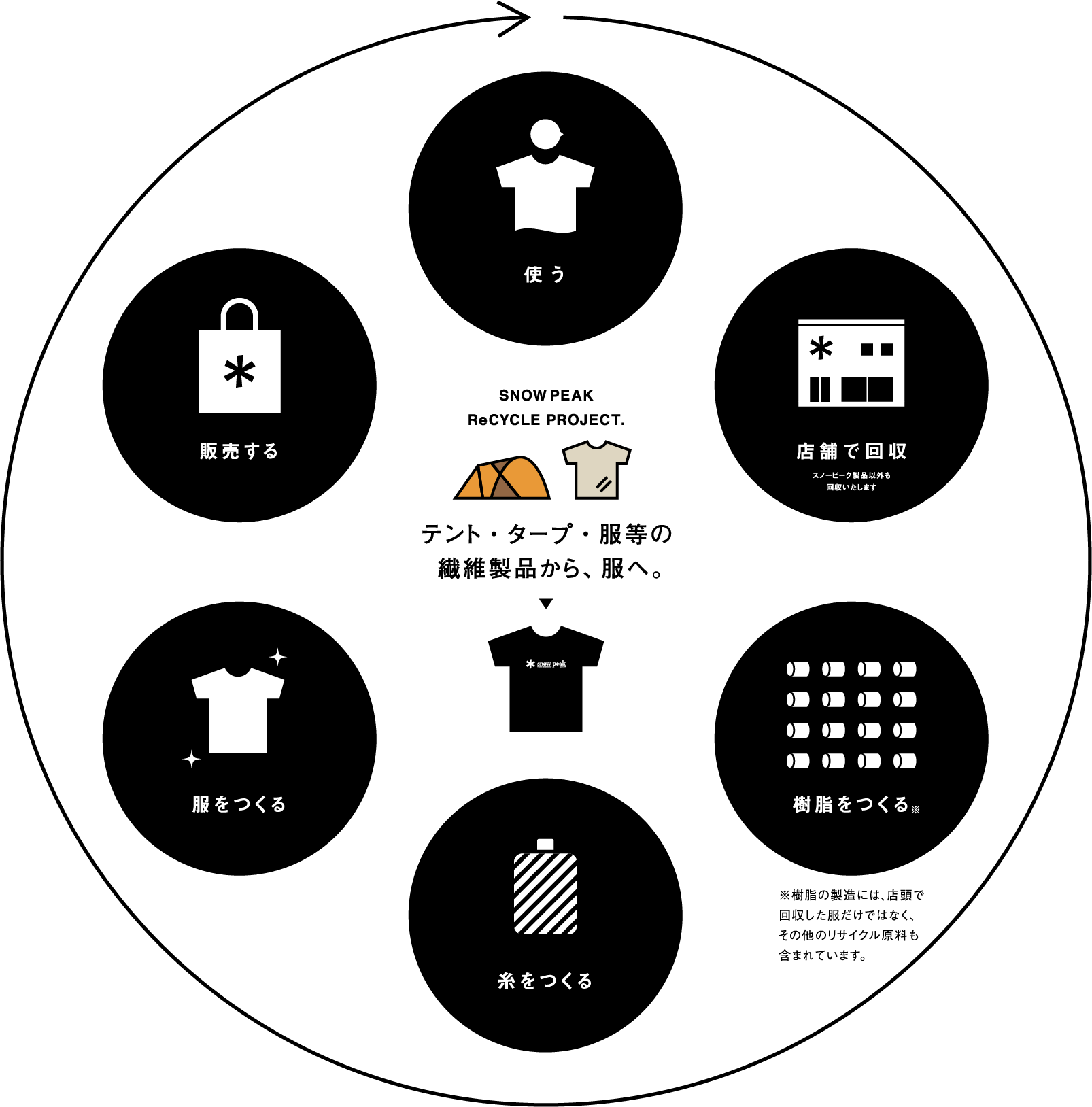 ※1:回収したテント及びタープの服へのリサイクルは現在開発中のため将来的な商品企画の構想です。