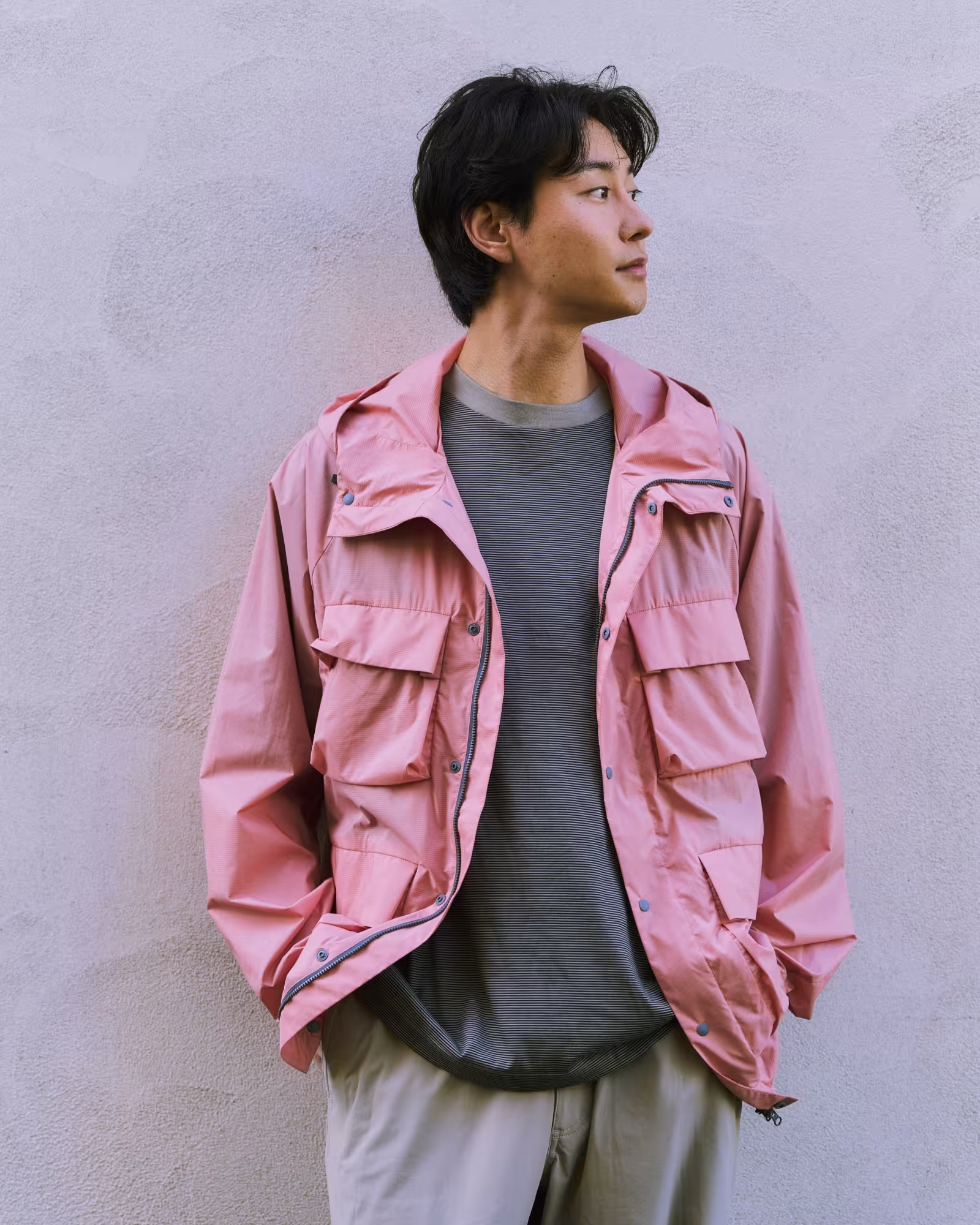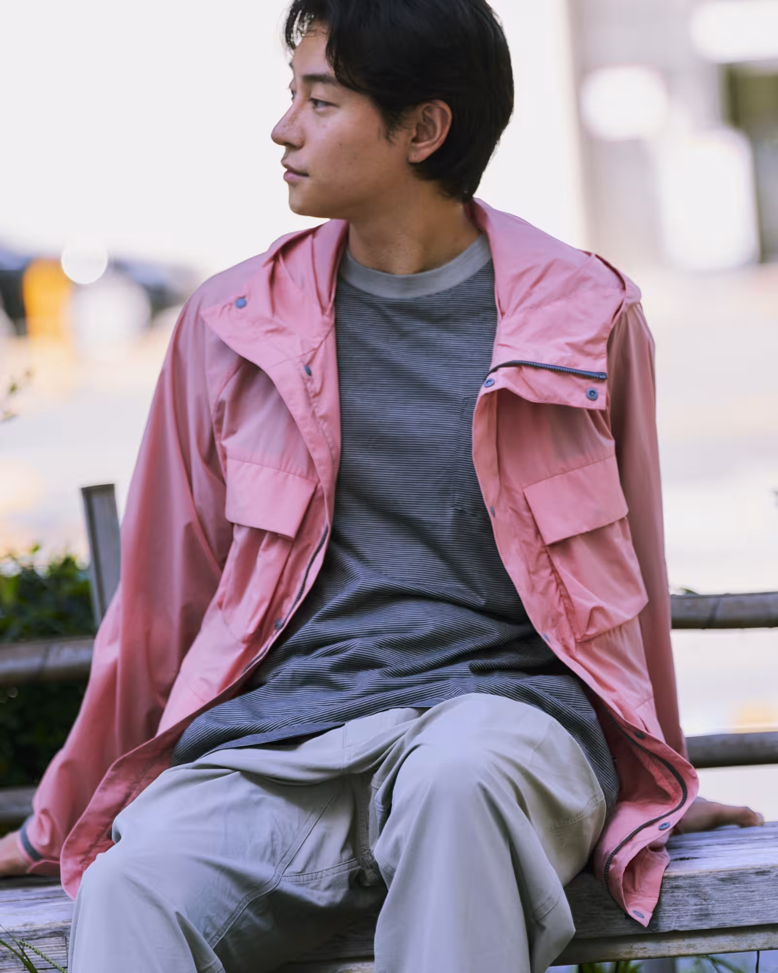 風を防ぎながらも蒸れにくく、肌にまとわりつきにくい軽やかな着心地で、アウトドアはもちろん、街での外出や旅先でも気軽に取り入れられる一着です。