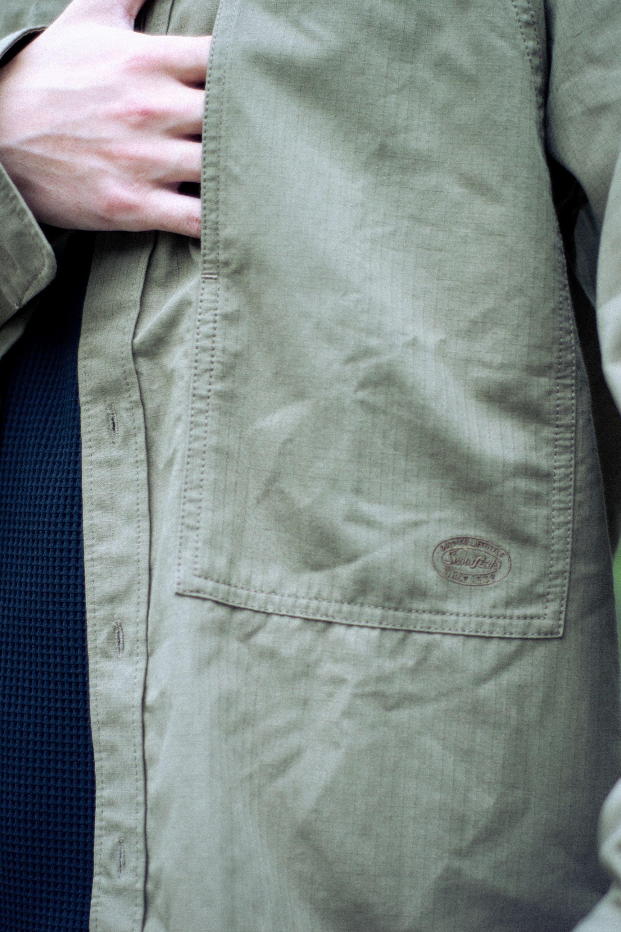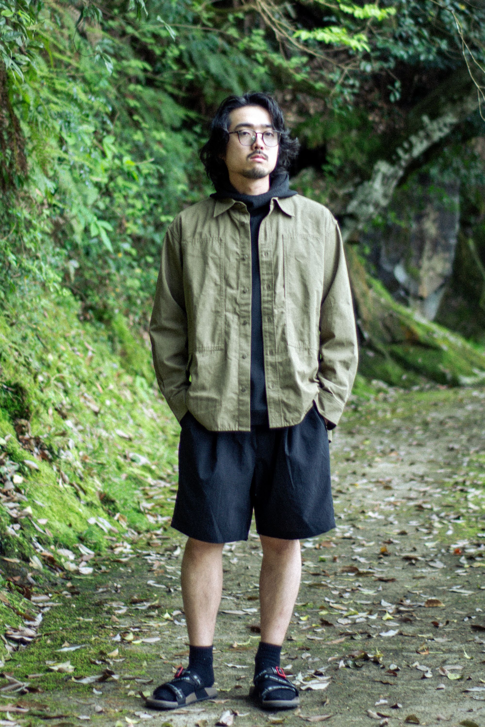 製品洗いでミリタリーライクな風合いをだし、その雰囲気を存分に活かしたデザインの長袖シャツ。後ろ身頃の左右タックで、肩まわりと身幅の運動性を確保し、両脇裾にはスリットを入れて、より動きやすくしました。アクセントにもなっている大容量の両胸ポケットには、右下にカラビナ等を提げられるループをオン。一枚着にも羽織にもなる万能さで、ロングシーズン活躍するアイテムです。