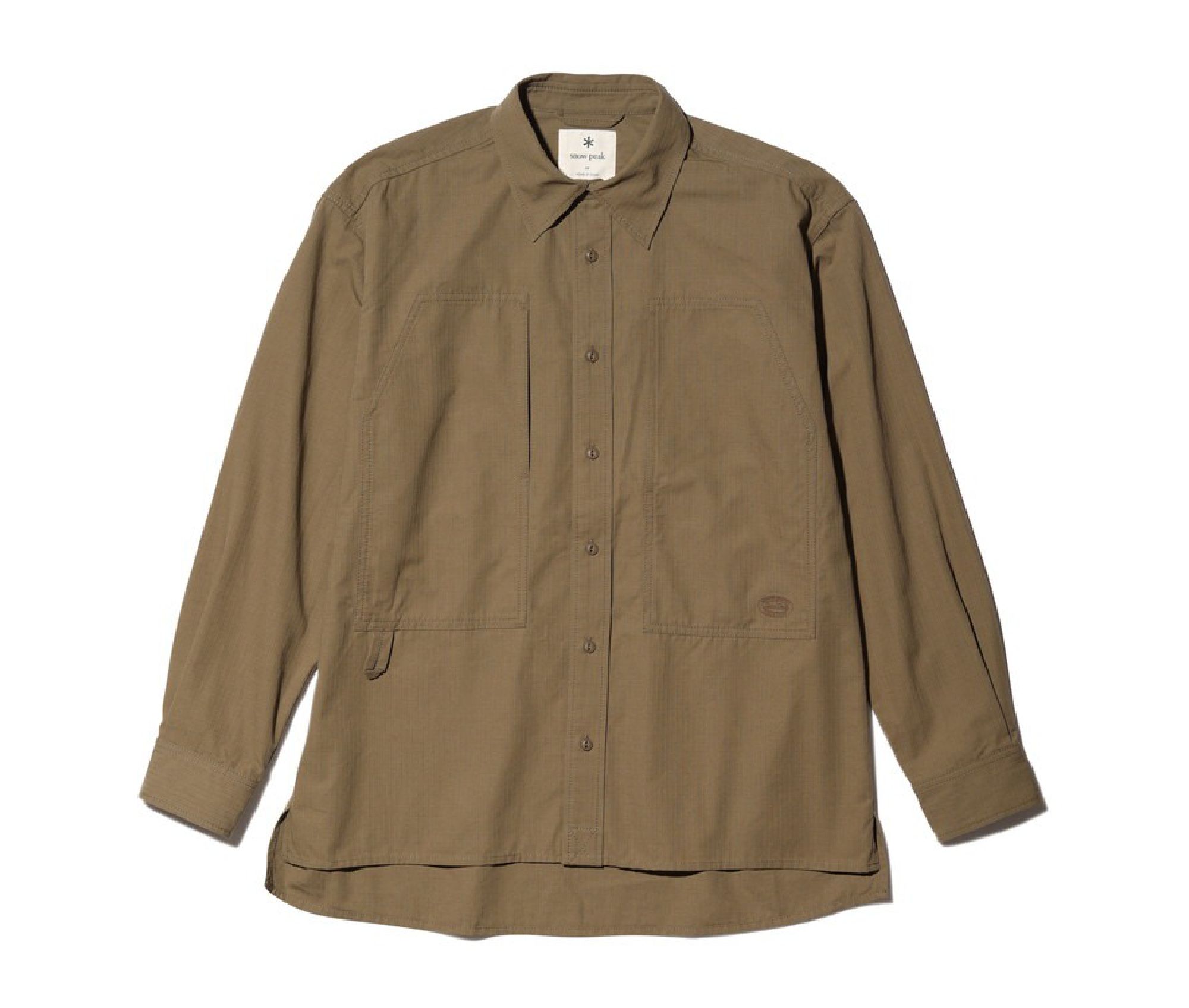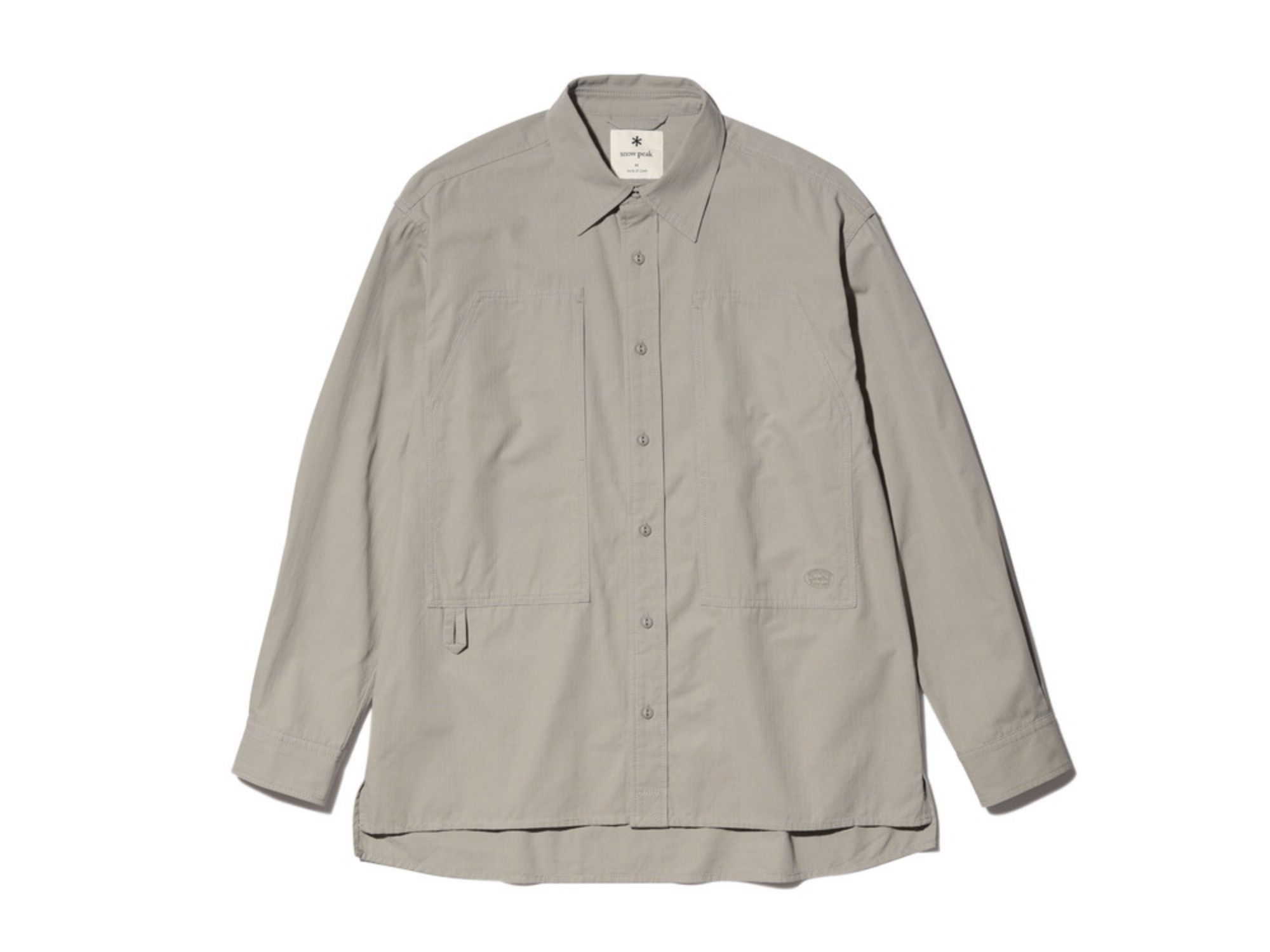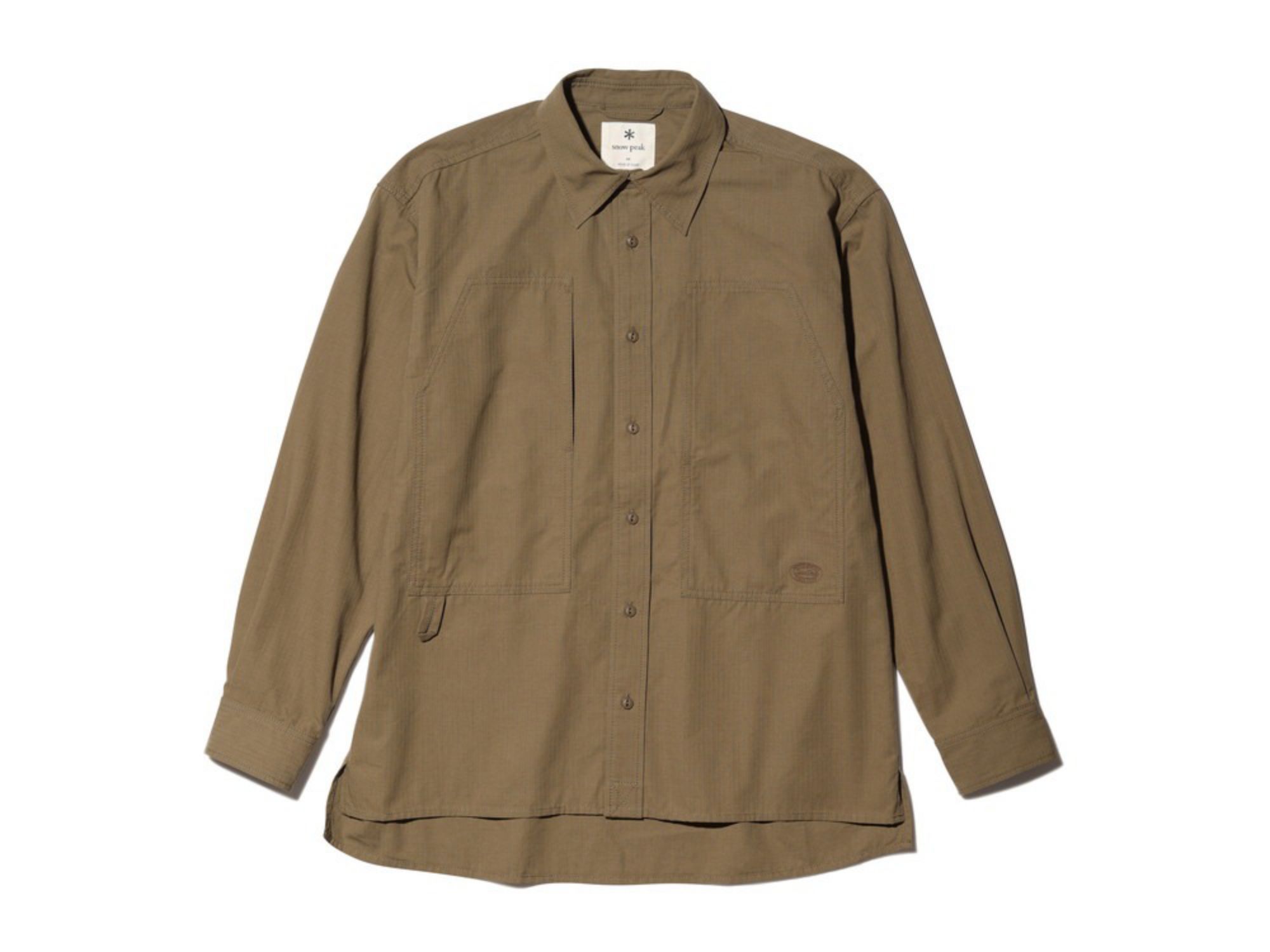製品洗いでミリタリーライクな風合いをだし、その雰囲気を存分に活かしたデザインの長袖シャツ。後ろ身頃の左右タックで、肩まわりと身幅の運動性を確保し、両脇裾にはスリットを入れて、より動きやすくしました。アクセントにもなっている大容量の両胸ポケットには、右下にカラビナ等を提げられるループをオン。一枚着にも羽織にもなる万能さで、ロングシーズン活躍するアイテムです。