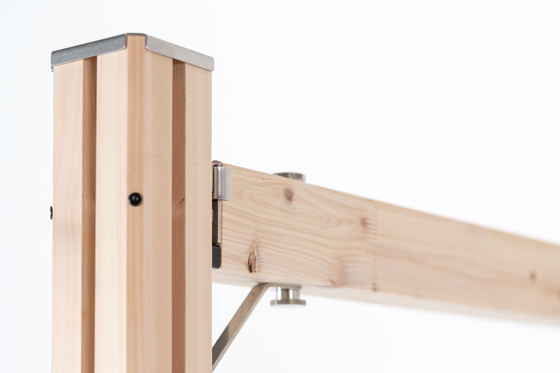 TUGUCAに使用される日本国産の桧(ひのき)。世界最古の木造建築物である法隆寺も桧が用いられ、現代にその姿を残しているように、TUGUCAが目指すのも、永く使い続けていただくこと。そのために各部材は自然素材にこだわるだけでなく、生活スタイルの変化に合わせ、容易にレイアウトを組み替えることができるようにしました。永く使い続けることこそが、究極のサステナビリティにつながると信じて。