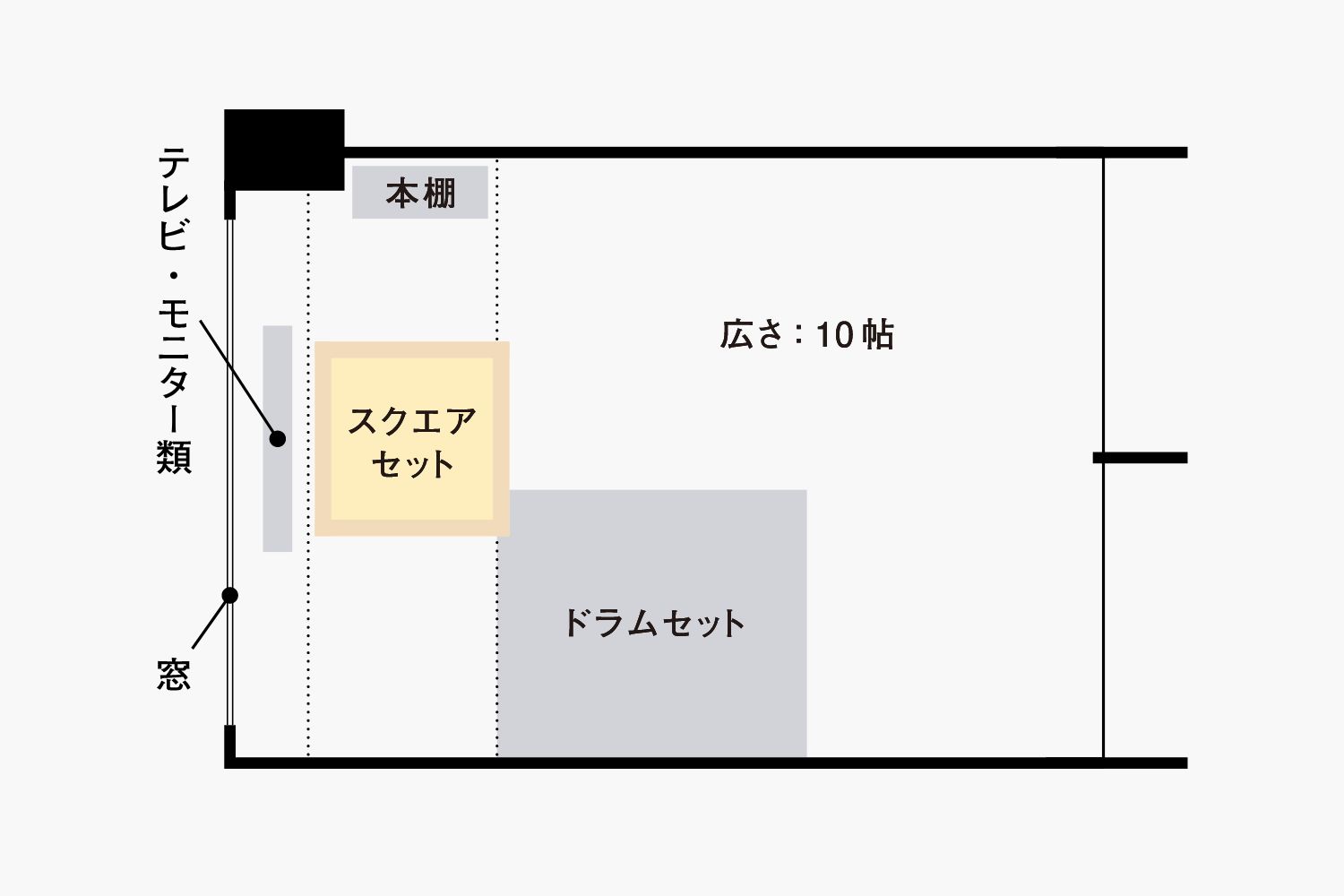 ▲内側は仕事スペース、外側は趣味のスペースのレイアウト